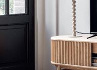 TV-meubel Roller 48x160x45 cm eikenhout €799 tafellamp Luox 50xØ25 cm €89,95