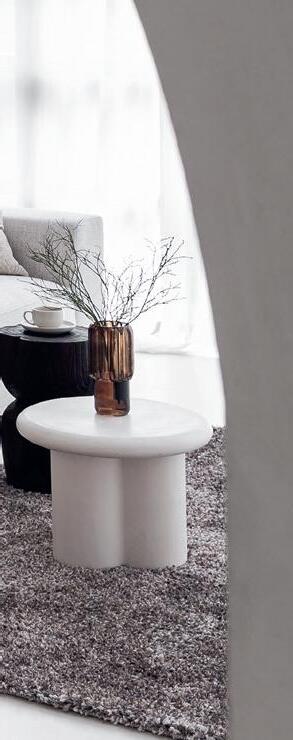 MUST Living bijzettafel Amber45xØ30 cm gerecycled teakhout €199 vloerkleed Lucky verkrijgbaar in diverse afmetingen en kleuren vanaf €399 laptoptafel Enzo 55x40x30 cm €99 wandpaneel Toledo large 190x145 cm €319 (ook verkrijgbaar 110x80 cm €199 / 145x110 cm €249) MUST Living poef Celeste 40x40x40 cm €129