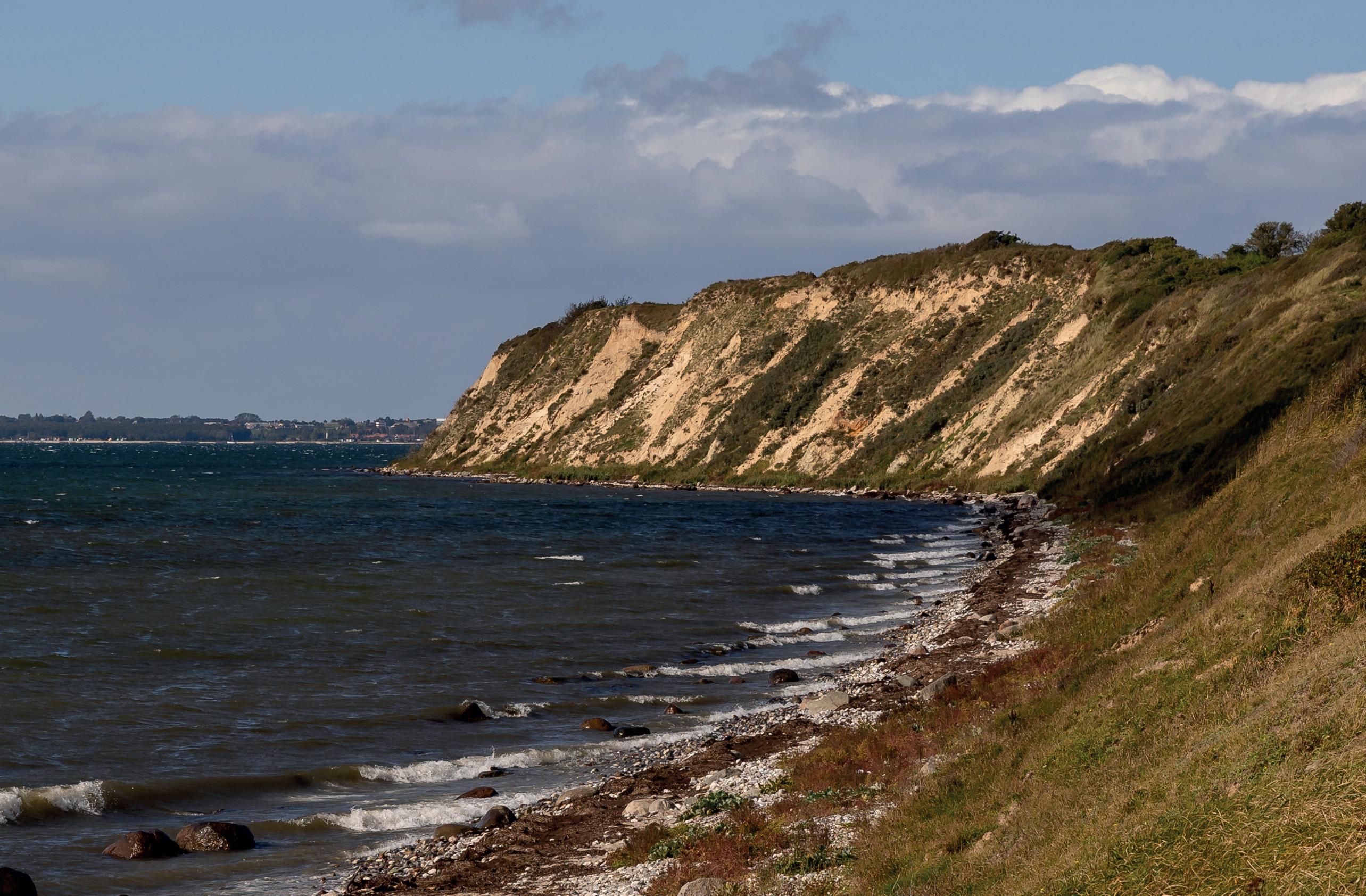 “Now we’re moving into the more geeky part of the geopark, because Ristinge Klint on Langeland is truly worth a visit. The many layers of mussel shells in the cliff tell the story of the last interglacial period before our own – a period 150,000 years ago when temperatures were three degrees higher than they are today. It’s almost like reading nature’s own climate archive, and that interglacial period teaches us a lot about the climate we’re heading into. For instance, we can see that sea levels were five to eight meters higher back then than they are today.”