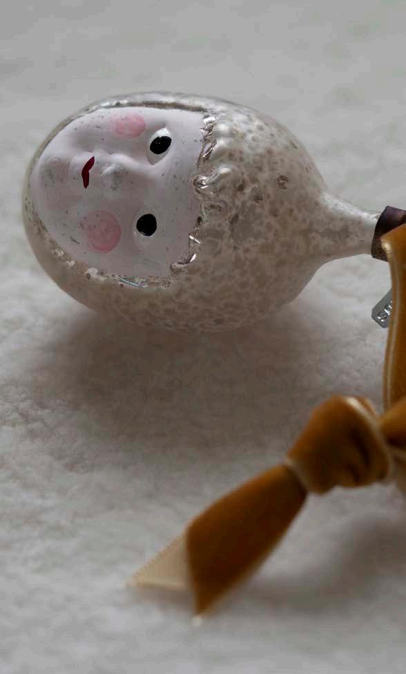 EXCELLENT GLASS BABY ANGEL HEAD. IT IS AS DELICATE AND LOVABLE AS IT HAS BEEN FOR OVER A CENTURY. IT IS MADE WITH MOUTH-BLOWN GLASS AND INSPIRED BY AN ORIGINAL ORNAMENT FROM AROUND 1920. IN ERAS PAST, THE TENDER IMAGE OF A BABY’S FACE ADORNING CHRISTMAS TREES SYMBOLIZED PURITY, HOPE, AND THE WELCOMING OF THE CHRIST CHILD INTO HEARTS AND HOMES.
