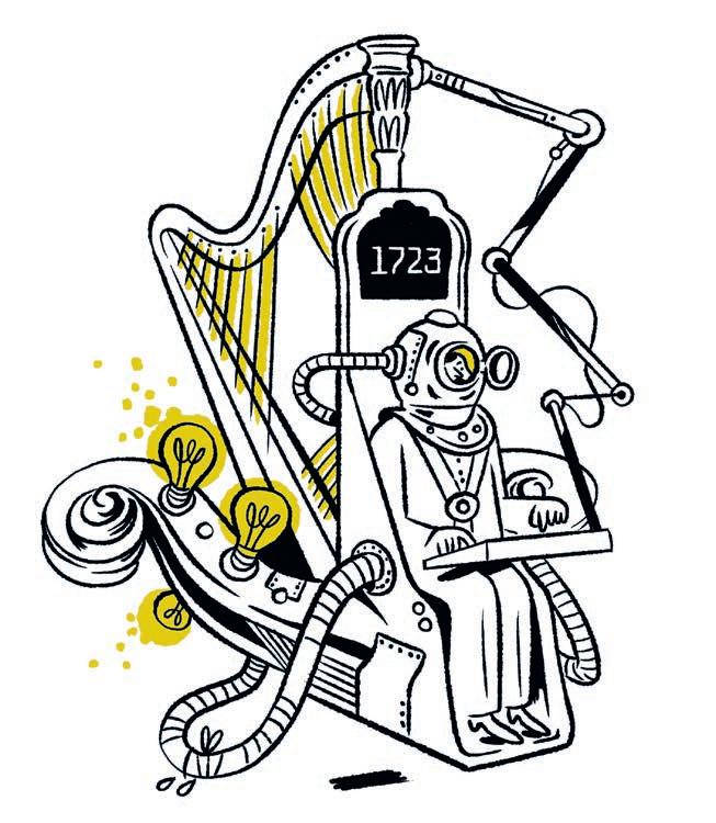 Die Musik des Barock lässt mir als Instrumentalist viele Freiheiten. Was ich in Händels GIULIO CESARE IN EGITTO spiele, nennt sich Basso continuo: eine harmonische Grundlinie, die viele Instrumente gemeinsam anstimmen. Ich kann mir aussuchen: Nehme ich die Barockgitarre – oder die Theorbe? Händels Partitur legt das nicht fest. Nur an einer Stelle im zweiten Akt ist ausdrücklich die Theorbe vorgesehen. Ein spannendes Instrument! Die Langhals-Laute wurde während der Renaissance entwickelt, sie besitzt sechs Saitenpaare, die sogenannten Choräle. Im Gegensatz zur Gitarre ist sie nicht von tief nach hoch gestimmt, sondern ihre ersten zwei Saiten sind um eine Oktave tiefer gesetzt. Das verlangt ganz andere Fingersätze als bei der Gitarre. Die Theorbe hat einen warmen, gehaltvollen Klang, drängt sich aber nie in den Mittelpunkt. Sie schafft vor allem Verbindungen zwischen den anderen Instrumenten. Nimmt man sie kaum wahr, habe ich als TheorbenSpieler alles richtig gemacht.