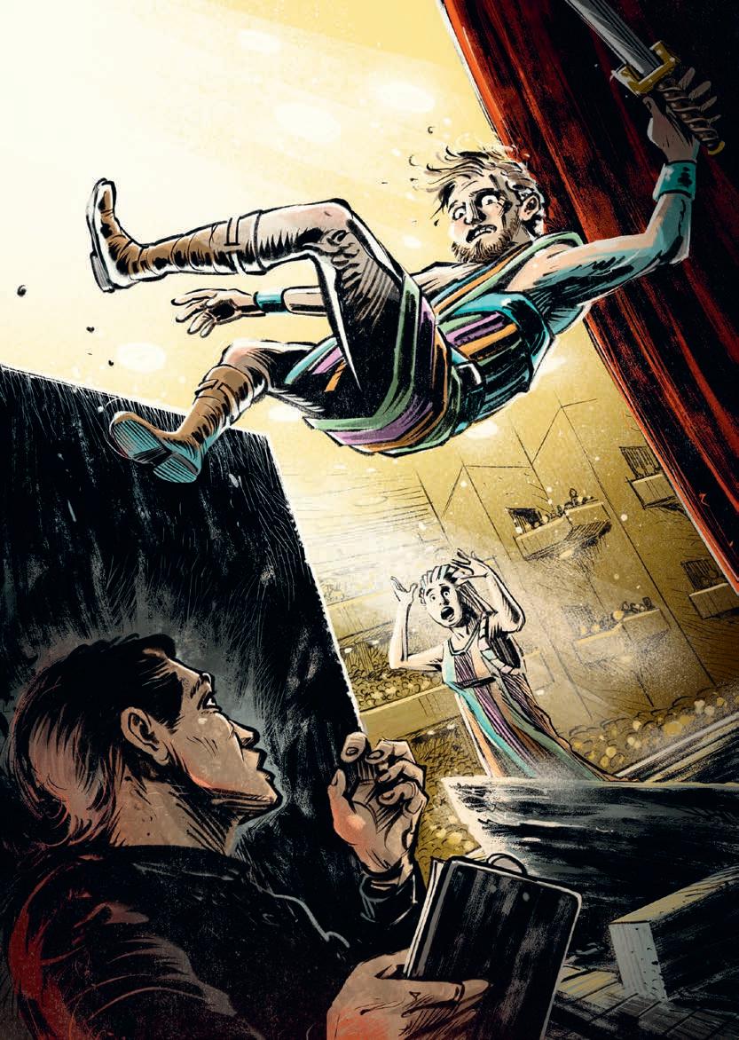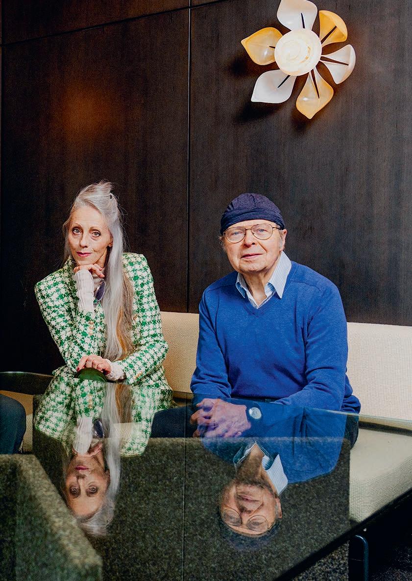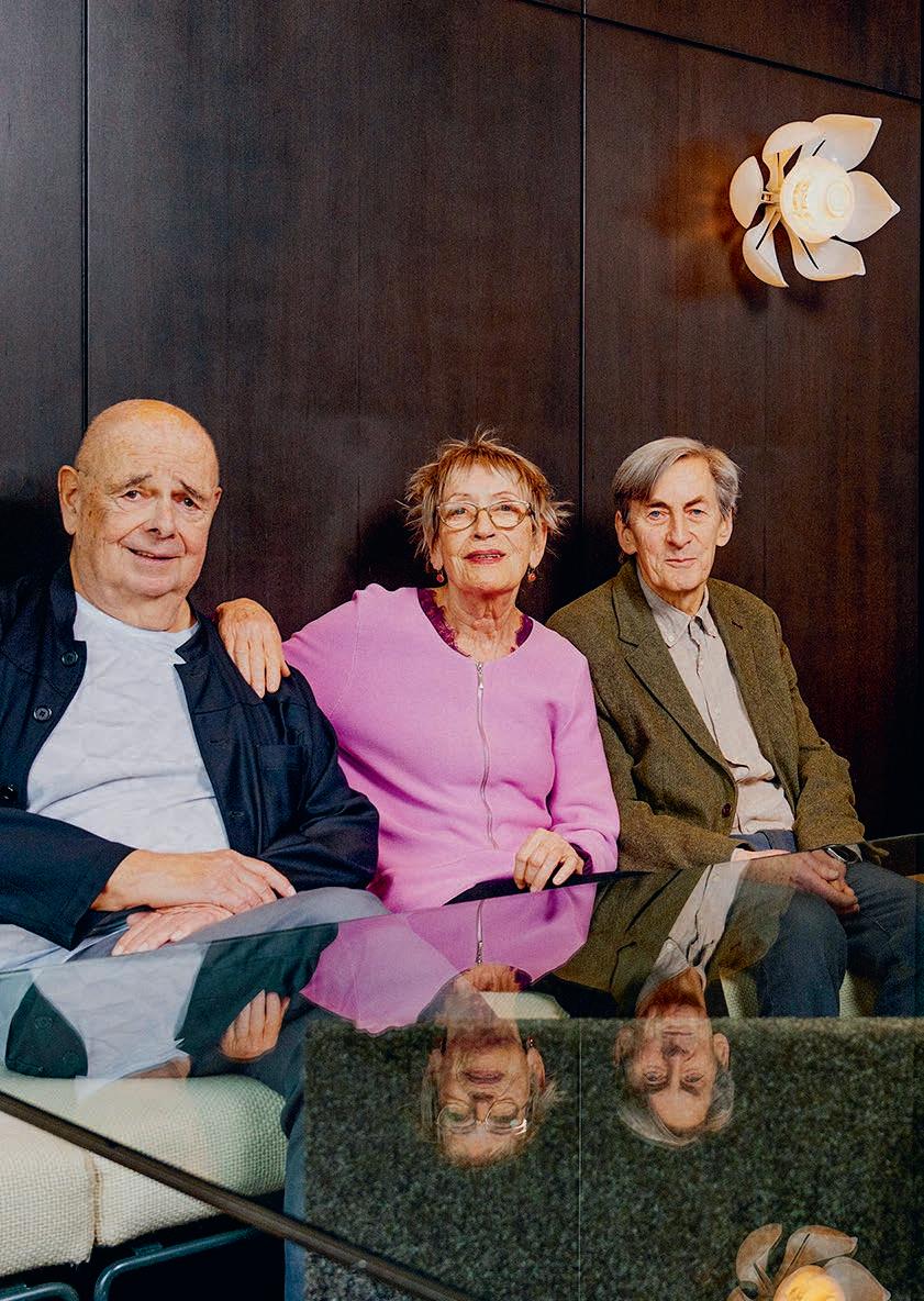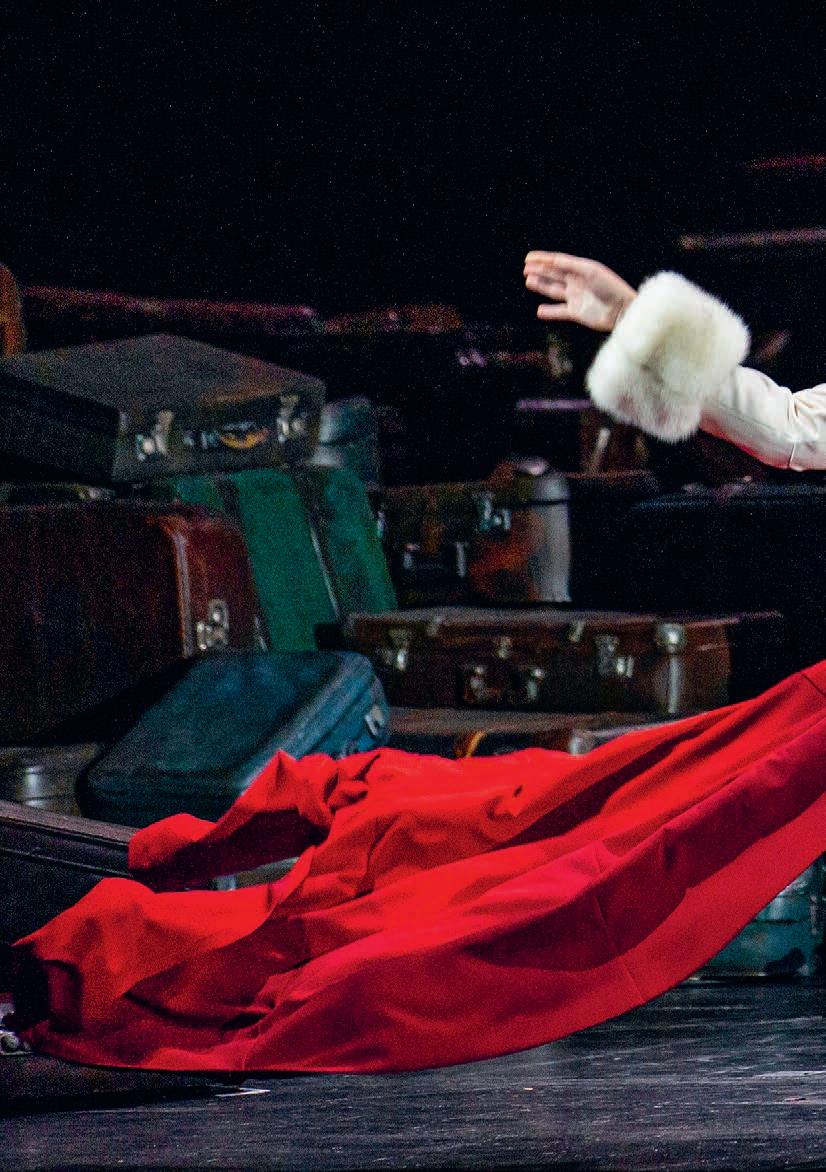 Alexander Als wir uns das erste Mal trafen, lernten wir die Musik kennen, auch das Bühnenbild war fertig konzipiert. Jürgen Es gleicht einem Spinnennetz, das sich über dem Raum aufspannt. Darin stehen drei Nornen auf hohen Stelen, sie weben, halten Seile – trennen sie plötzlich durch, worauf Lehmklumpen zu Boden fallen. VAL Man versteht alles intuitiv. Lehm, Gewebe, Nornen, Mythologie, das Archaische, alles ist miteinander verwoben. Ich sehe mich ein Leben lang als Fee oder Vampir. Beim ersten Treffen entstand große Spielfreude, wir probierten alles aus. Alexander Die Regisseurin Franziska Angerer fragte, was wir als Kinder gespielt haben. Nun gibt es eine Szene, wo wir »Reise nach Jerusalem« spielen. Schon komisch, wenn ein paar alte Leute wie Kinder spielen, verlangsamt – und sich dann auch noch mit Lehm beschmieren – bei den Proben in Badekleidung, später dann nackt.