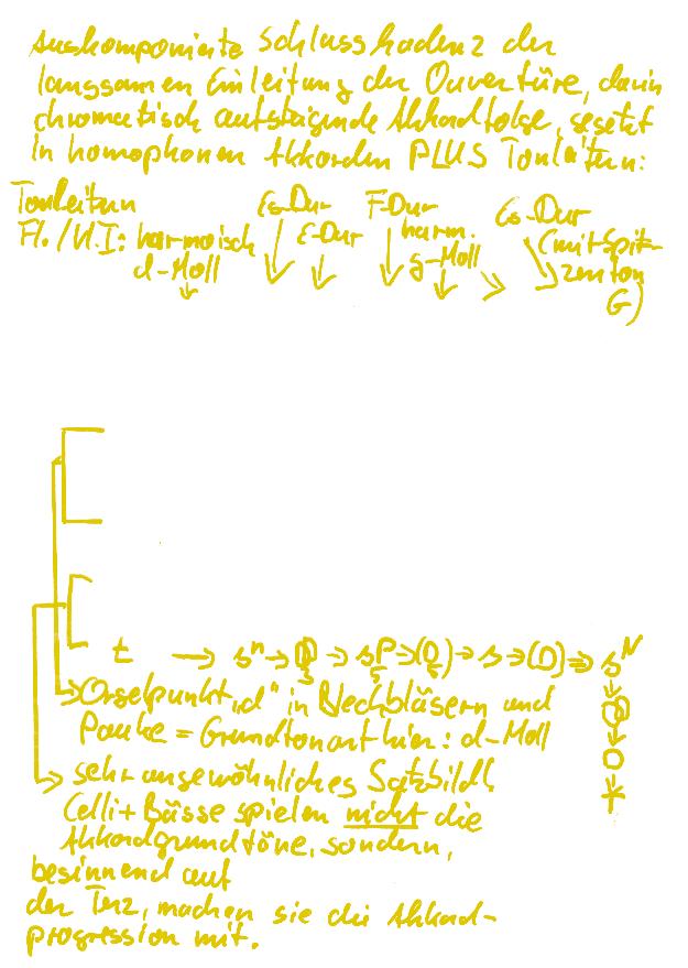 Mozarts Genialität versteckt sich oft im Detail, in der reichen, bis ins Kleinste differenzierten Gestaltung der Partituren. Ein Beispiel sind die Takte 23 bis 26 der GIOVANNI-Ouvertüre. Dort lässt Mozart, leicht variiert, bereits jene Musik erklingen, zu der am Schluss der Oper der Geist des Komturs Giovanni für sein Tun zur Verantwortung zieht: Es beginnt mit wuchtigen d-Moll-Akkorden, gefolgt von drängenden Synkopen und dem pochend-punktierten Grundrhythmus. Schließlich mündet der Abschnitt in eine Schlusskadenz, in der Bläser und Bassstimme in chromatisch ansteigenden Akkorden gesetzt sind. Flöten und erste Geigen spielen dagegen: in wellenförmig auf- und absteigenden Tonleitern. Die Skalen verändern sich entsprechend dem Grundakkord taktweise; sie geben dem Abschnitt etwas drängend Bedrohliches, brennen sich als »latente Gefahr« in unsere Erinnerung ein.