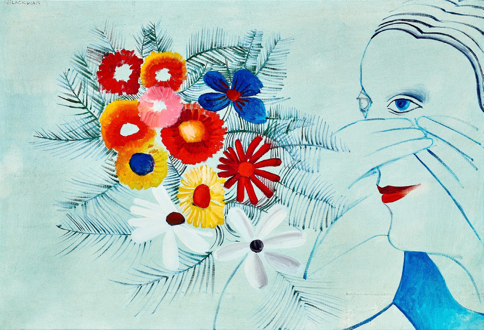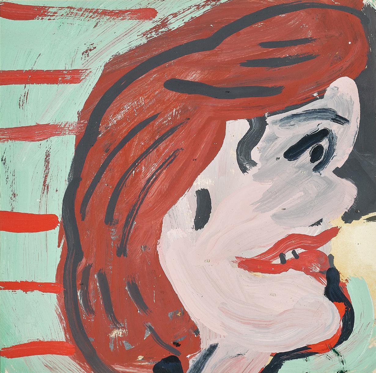 50.5 x 50.5 cm (frame) bears inscription on backing verso: 42 bears inscriptions on Discerning Eye, Mall Galleries London 1990 label attached verso: PROFILE / ROSE WYLIE