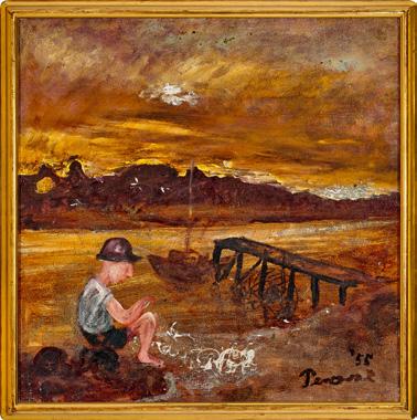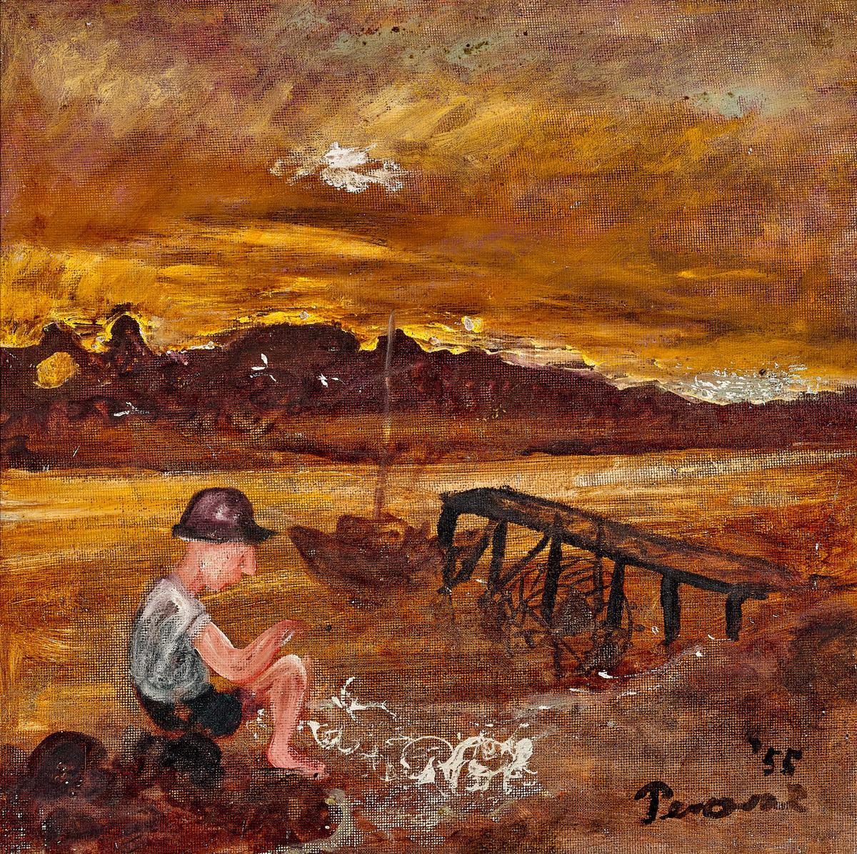 Clarice Beckett (1887 – 1935) (Figure on beach) oil on pulpboard