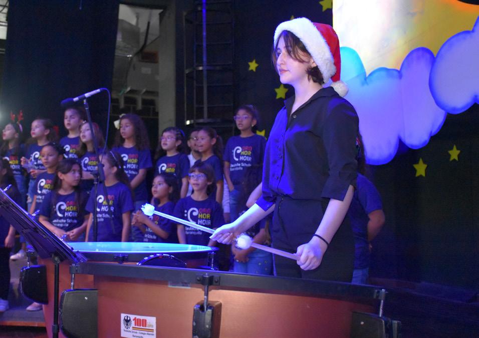 El Coro Juvenil del colegio, como es tradición, también participó en el Weihnachtskonzert, pero esta vez llegaron con una sorpresa. Bajo la dirección del profesor José Mejía, el estudiante Martín Peláez cumplió su anhelo de cantar junto al coro haciendo un Beat Box durante la canción “Angels we have heard on high”.