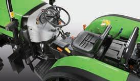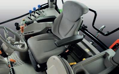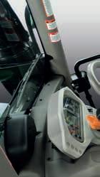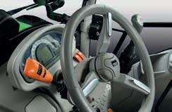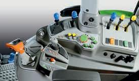 > Depending on the tractor model, front loader joystick with Powershift buttons. Stop&Go, SDD rapid steering system and all controls for front loader operation are fully integrated and easy to reach.