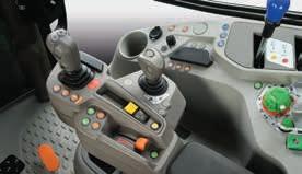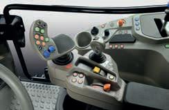 modelo de tractor, cargador frontal con joystick y botones de cambio bajo carga. Stop&Go, sistema de giro rápido SDD y todos los mandos para el manejo del cargador frontal están completamente integrados y son de fácil acceso.