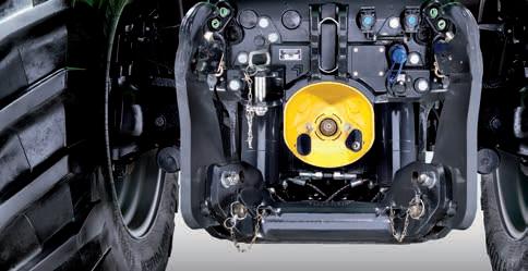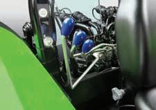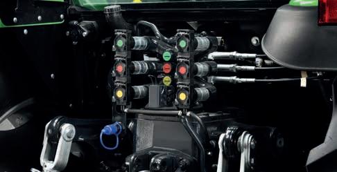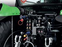 > Válvulas de accionamiento electrohidráulico en combinación con una bomba de caudal variable Load Sensing de hasta 210 l/min (en el 6230 TTV HD), que alimenta hasta cinco distribuidores hidráulicos en la parte trasera, dos en la parte delantera y un elevador delantero
