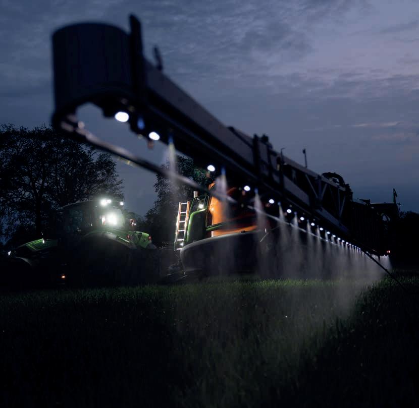 > El depósito de combustible de 505 l y hasta 23 luces LED permiten jornadas de trabajo muy productivas.