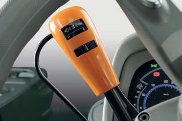 in avanti, la trasmissione innesta i rapporti superiori, mentre tirandolo all’indietro si scala di marcia. Per un comfort extra, la velocità corrente può essere agevolmente memorizzata e attivata spostando semplicemente il controller RVshift verso sinistra. Per il rapido passaggio tra il trasporto veloce e il lavoro sui campi, la trasmissione RVshift prevede due modalità di guida (Campo e Trasporto). Il semplice azionamento di un pulsante, situato in prossimità del controller RVshift, consente di passare da una modalità all’altra senza dover selezionare tutti i rapporti. Le modalità sono pre-programmate in fabbrica,