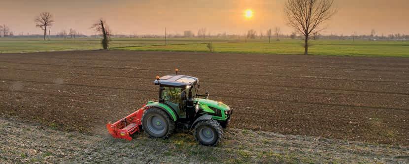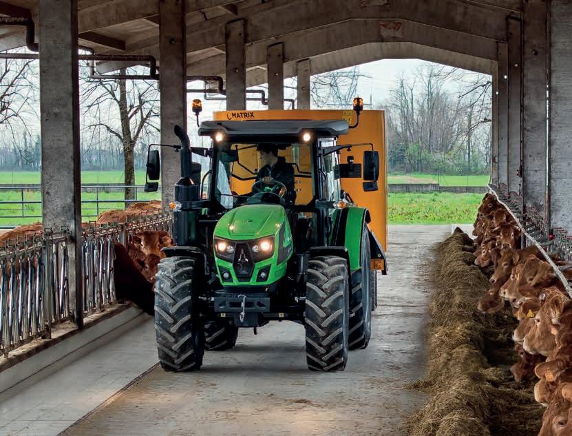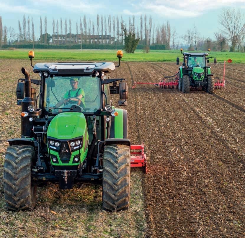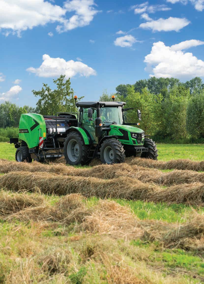 O novo modelo de trator DEUTZ-FAHR Série 5 Keyline destaca-se pela sua excecional configurabilidade, adaptandose às necessidades mais exigentes. O trator 5 Keyline é adequado para uma vasta gama de atividades, incluindo trabalho no campo, cultivo de culturas em fileiras, atividades de produção de feno, tarefas estacionárias e operações com um carregador frontal. A sua extraordinária versatilidade deve-se ao engate eletro-hidráulico da tração às 4 rodas e da TDF, e à TDF de proporcional ao avanço com veio independente. Além disso, o potente sistema hidráulico com um máximo de 6 vias traseiras, a transmissão Powershift de 2 fases com Hi-Lo e uma seleção de mudanças de redutor aumentam a gama de configurações. O utilizador pode memorizar até 2 velocidades do motor que podem ser definidas e recuperadas. Juntamente com uma vasta gama de pneus que oferecem uma distância ao solo generosa, permitem um desempenho eficiente e confortável em todos os tipos de atividades.