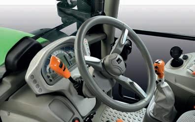 (dependendo do tamanho dos pneus). Uma das principais características do PowerShuttle é a famosa função Stop&Go, que permite parar o trator sem utilizar a embraiagem. A TDF é controlada por uma embraiagem múltipla de disco húmido e é acionada eletro-hidraulicamente, bastando premir um botão. Os controlos da TDF nos guarda-lamas traseiros melhoram o conforto na utilização do equipamento. A TDF está equipada