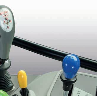 paliwa. Biegi pełzania zwiększają elastyczność, podwajając liczbę biegów zarówno do przodu, jak i do tyłu, umożliwiając ciągnikowi poruszanie się z prędkością mniejszą niż 400 m/h przy maksymalnej prędkości znamionowej silnika (w zależności od rozmiaru opon). Kluczową zaletą PowerShuttle jest funkcja Stop&Go, umożliwiająca zatrzymanie ciągnika bez użycia sprzęgła. WOM jest sterowany przez sprzęgło wielotarczowe