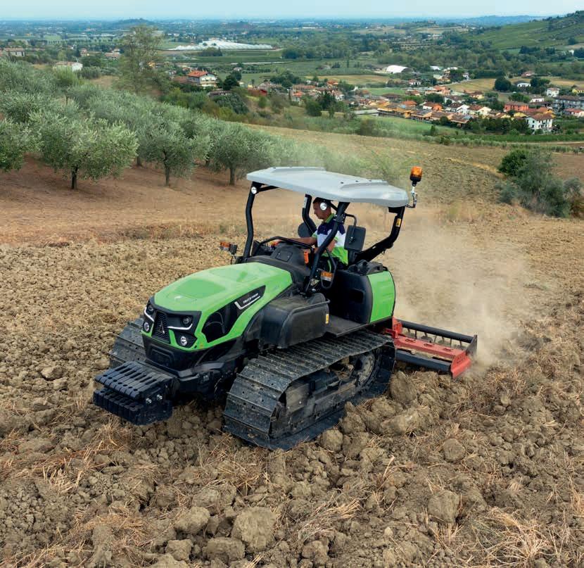 > 6 modelos disponibles en distintas variantes para satisfacer todas las necesidades: los 5 KF están especializados en viñedos, los 5 KM son adecuados para aplicaciones en campo abierto como en huertos anchos, mientras que los 5 K son los únicos tractores de orugas diseñados específicamente para aplicaciones severas en campo abierto.