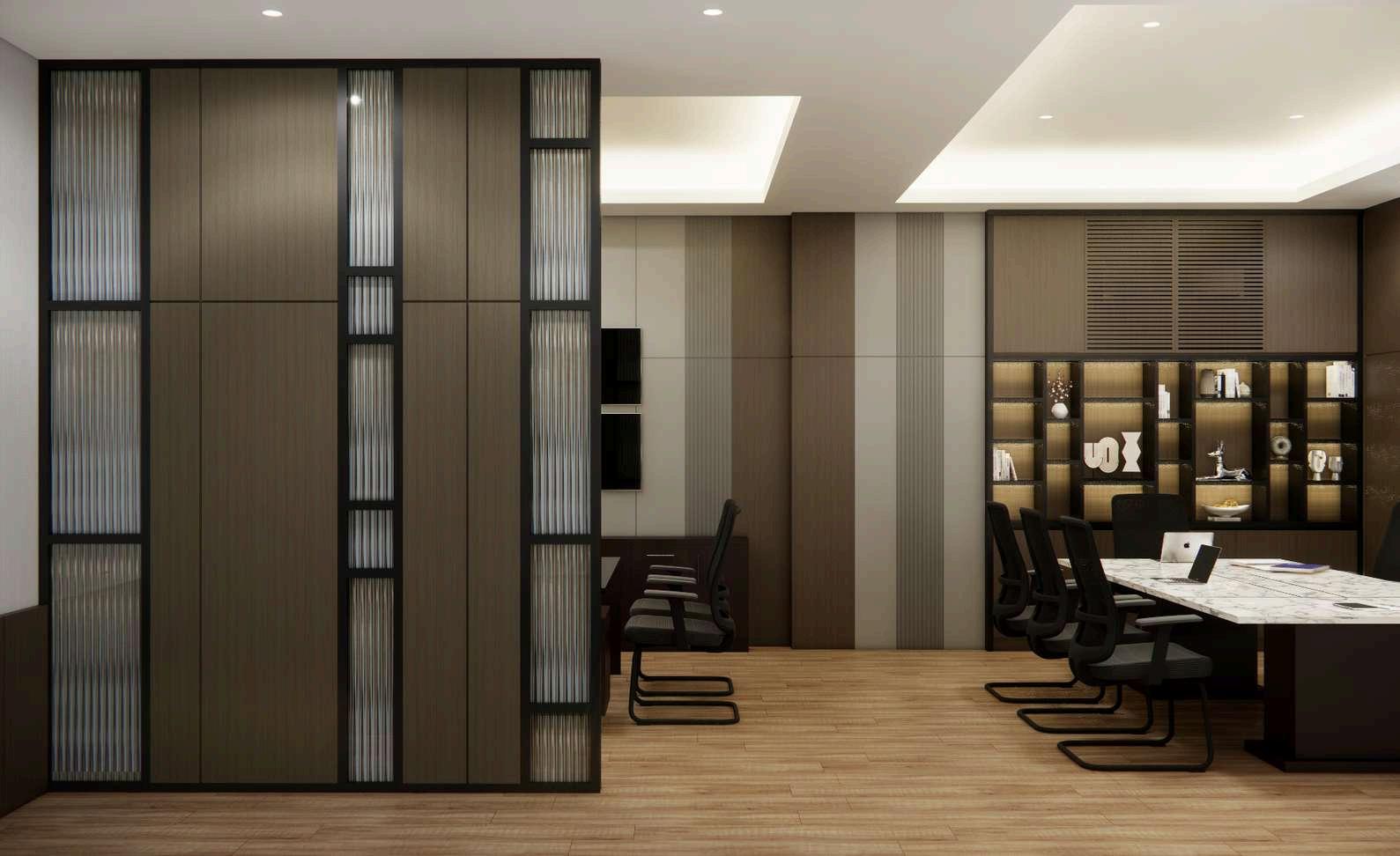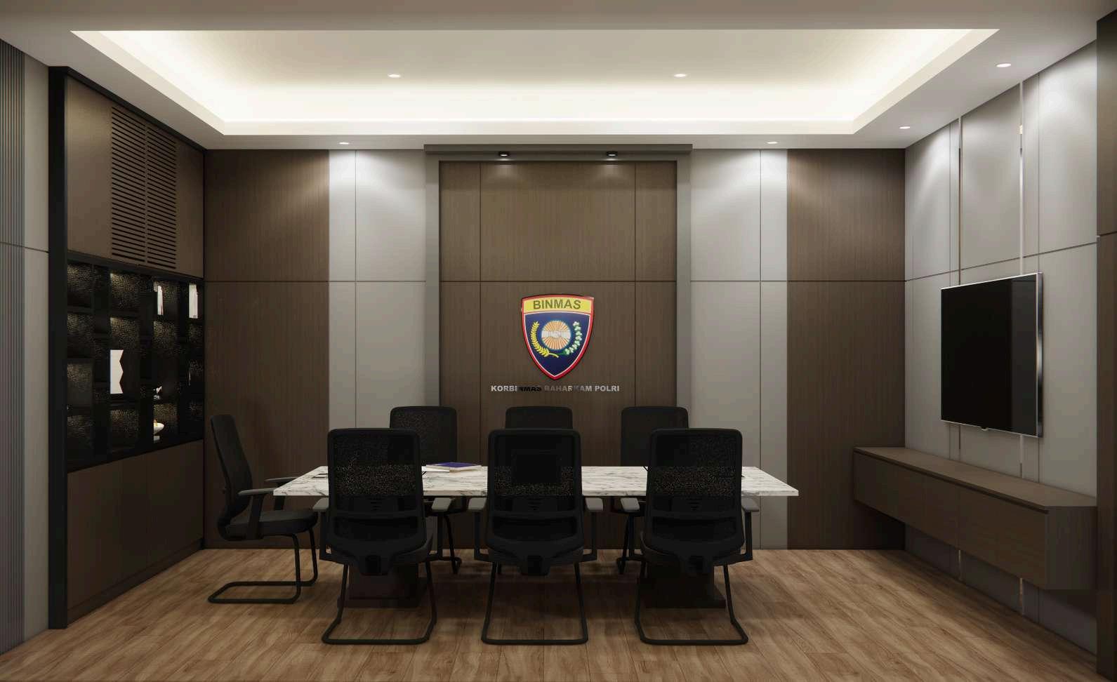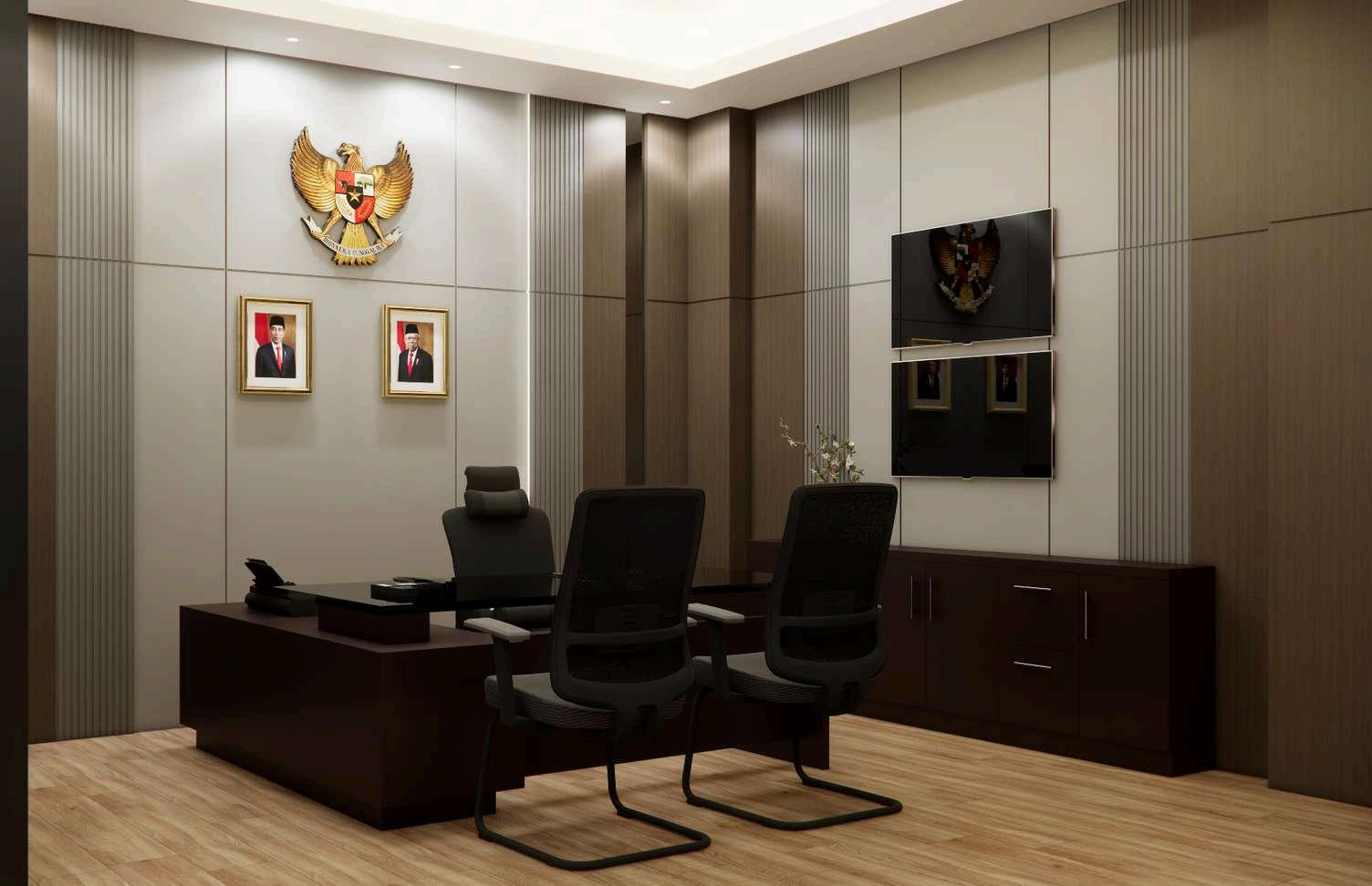 Interior pada ruang Irjen Mabes Polri ini mengusung tema elegan dan modern dengan perpaduan warna cokelat, abu-abu, tua dan abu-abu muda menciptakan suasana yang nyaman profesional, dan berkelas Kesan pertama yang muncul pada ruang ini kombinasi sempurna antara kemewahan yang terorganisir dan kenyamanan yang fungsional. Wall panel yang terpasang pada setiap sudut ruang berfungsi sebagai elemen desain yang menambah nilai estetika pada ruang kerja serta terdapat partisi yang dirancang untuk menciptakan ruang privasi bagi Irjen Panel ini tidak hanya berfungsi sebagai dekorasi, tetapi juga memberikan nuansa yang lebih mewah dan formal Untuk memberikan kesan yang lebih elegan, wall panel menggunakan material kayu dengan warna netral seperti cokelat dengan perpaduan abu-abu tua dan abu-abu muda yang dipasang dengan rapih dan presisi menciptakan efek visual yang halus dan mewah. Ditambah dengan sentuhan aksen plat silver pada wall panel ruang ini semakin menghadirkan kesan penuh kehormatan