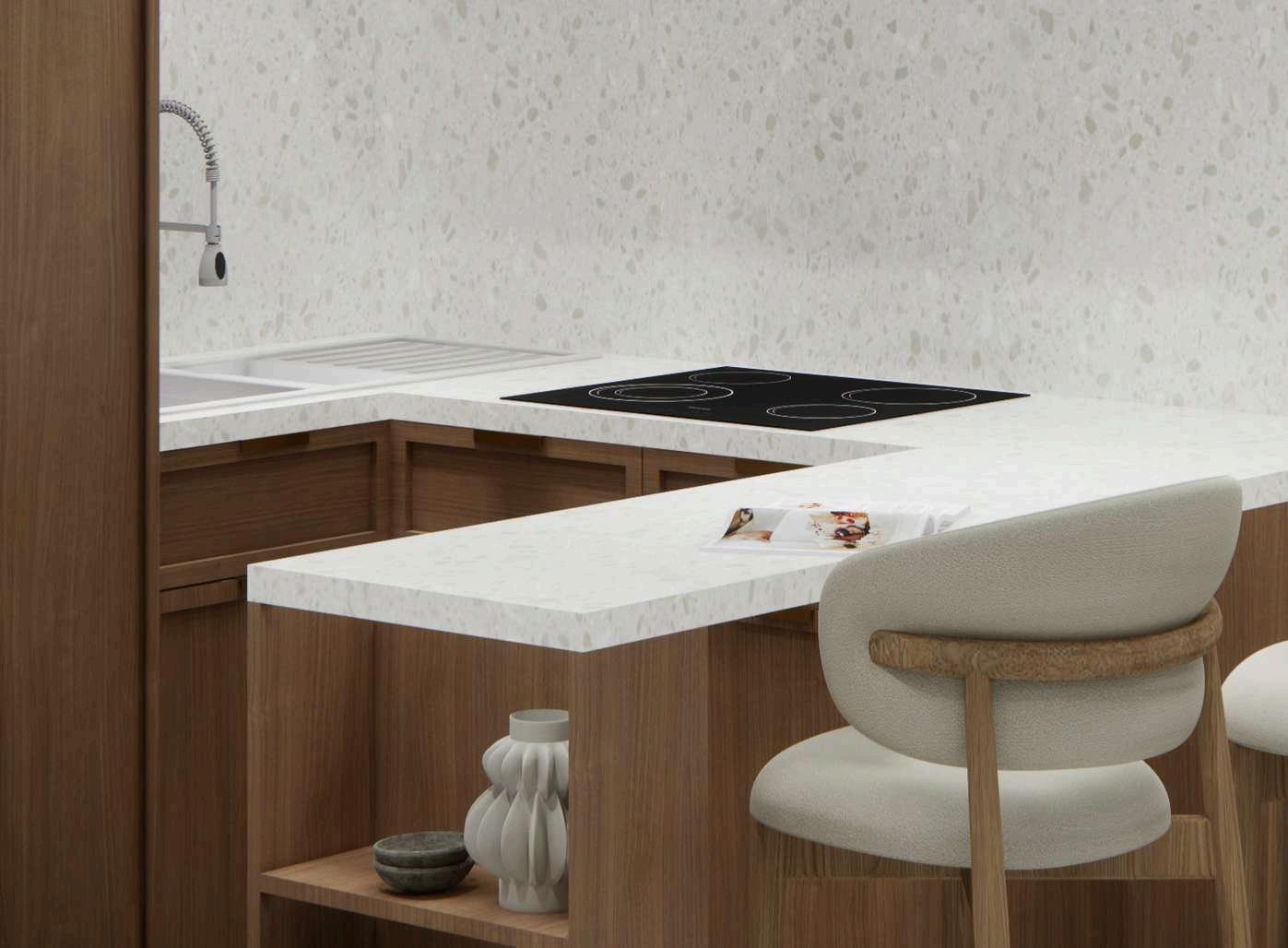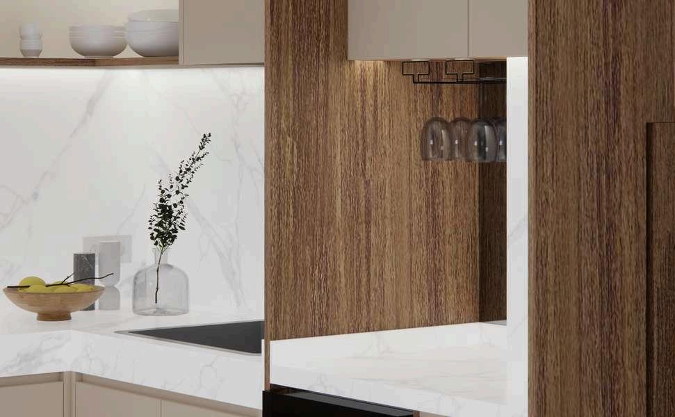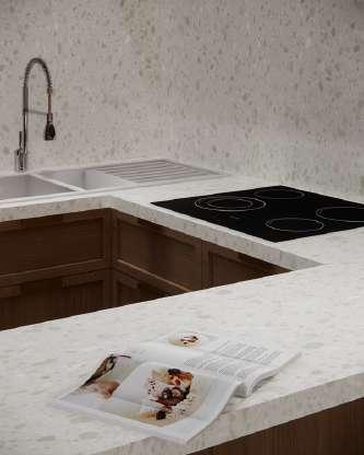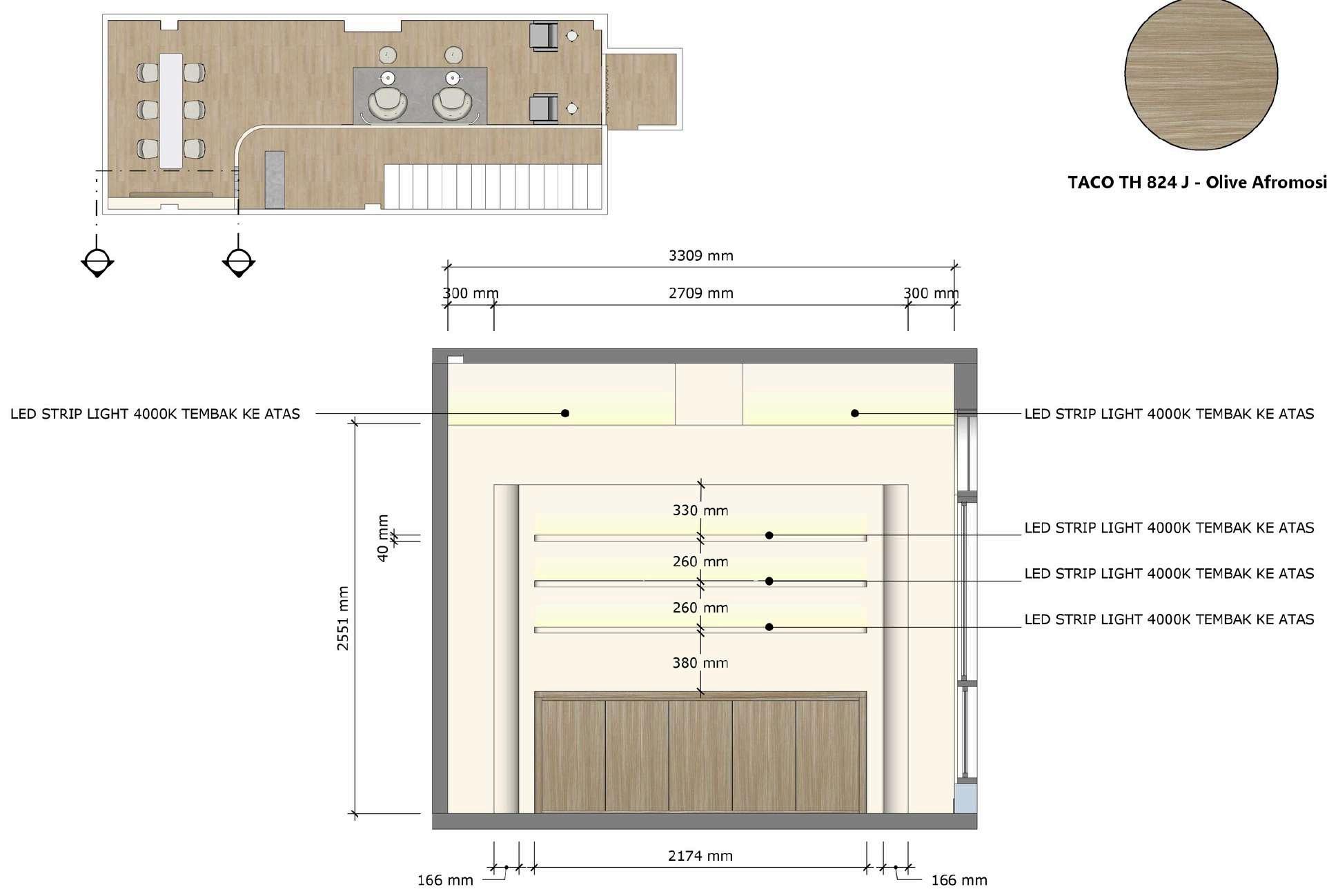 membagi dua area yaitu area memasak dan area mini bar Kitchen ini tentunya