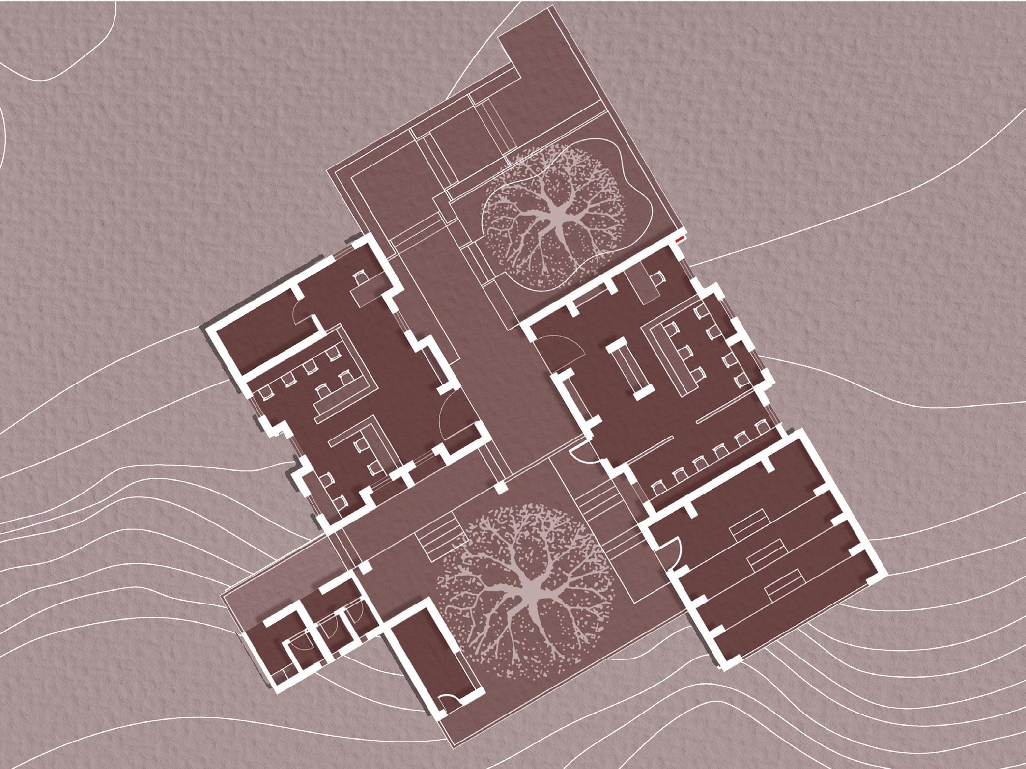 The intent of the project was to design a public library for the user group in and around the Shilaj gam. The site is located opp to Shilaj Lake. The site itself had its own character as it was a contoured site. Further, the primary concern besides designing was to explore different materials and their techniques. it also helped in understanding how materials can be used in different ways, the pros and cons of materials, the impact of it on formal expression and spatial expression.