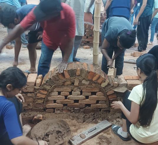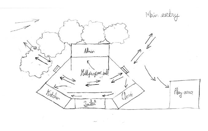 The process started with the contextual study of the place and the people to whom the space would cater. These different factors led to the final design. The spaces are visually connected to the outside environment with a beautiful view of the lake and one is also visually directed towards the lake which was enhanced by the use of brick vaults. Vaults with brick jalis and openings help maintain the temperature as well as light while also being cost-effective and locally available. The spaces are divided according to their function and needs, while being transitional they also increase social interaction while also being private.
