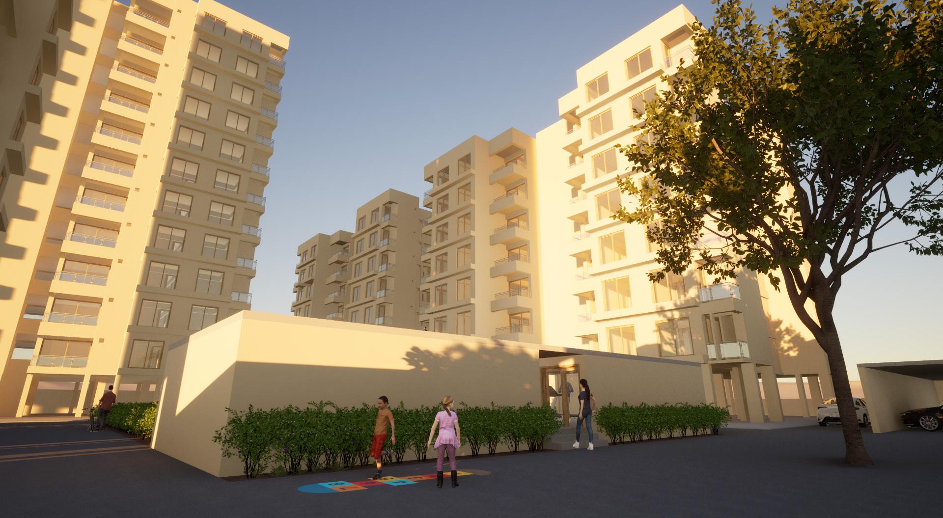 The site is located near Shivranjini Circle, Ahmedabad. The program was to design a mixed-use building that has apartments and commercial spaces. the apartments include a total of 160 units for the middle-income group. the intent was to make a community living, having public spaces, spatial configuration, and Relating the place with the site context which itself relates to the local traditions and living habits of people.