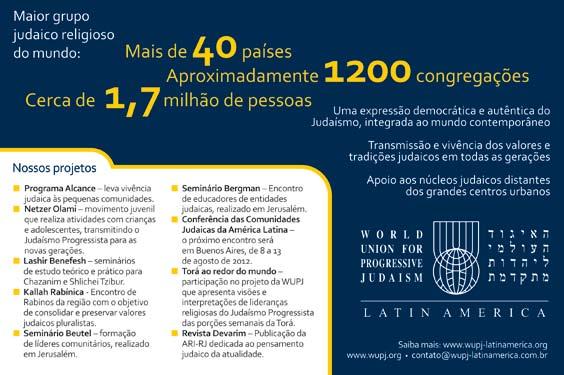 Rio de Janeiro Aqui, todo judeu encontra seu judaismo www.arirj.com.br +55 21 2156-0400 WORLD UNIONFOR PROGRESSIVE JUDAISM Próximo está o Eterno de todos que O buscam, de todos que O buscam com sinceridade. Salmo 145:18
