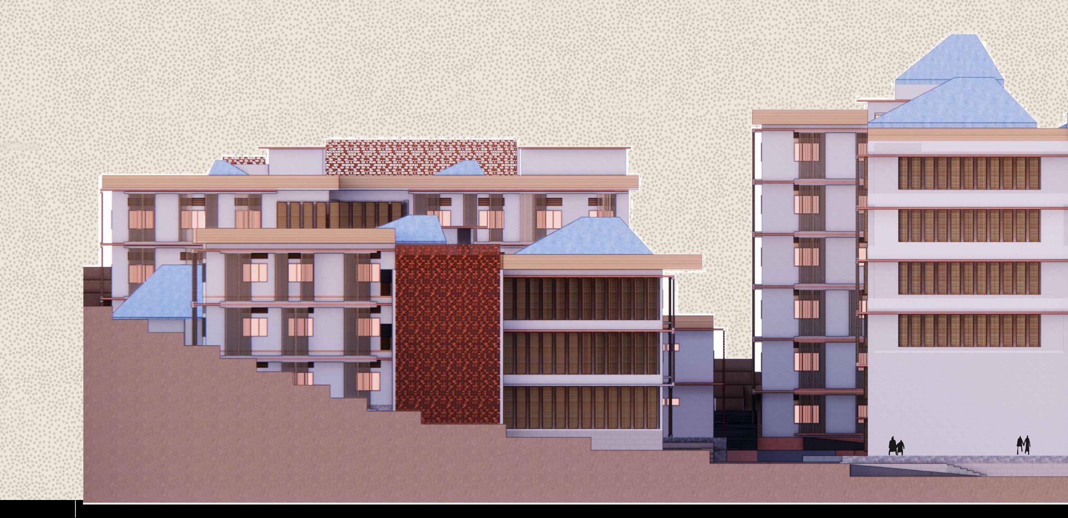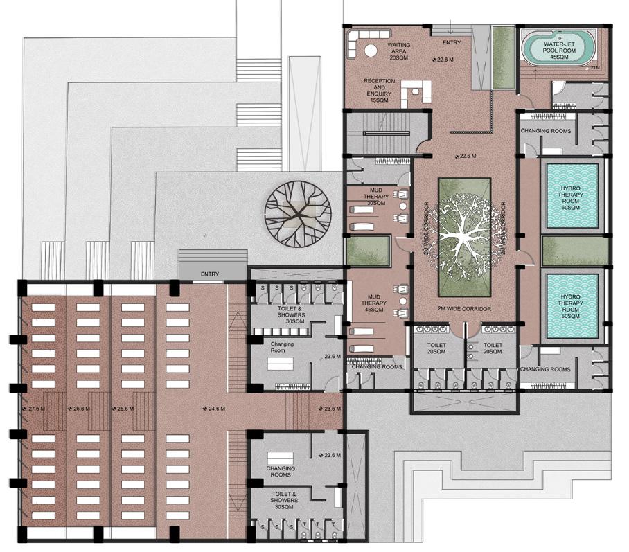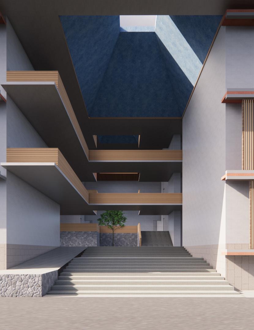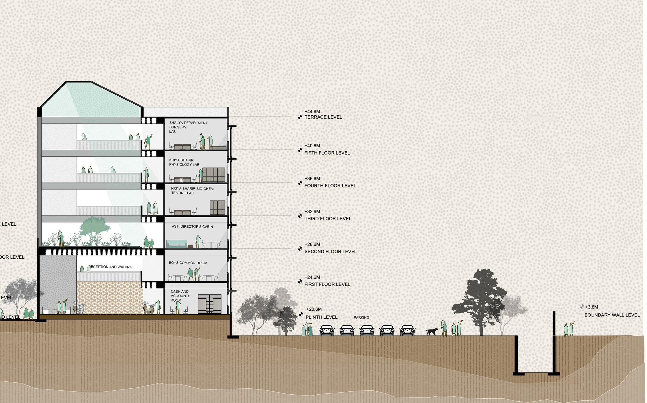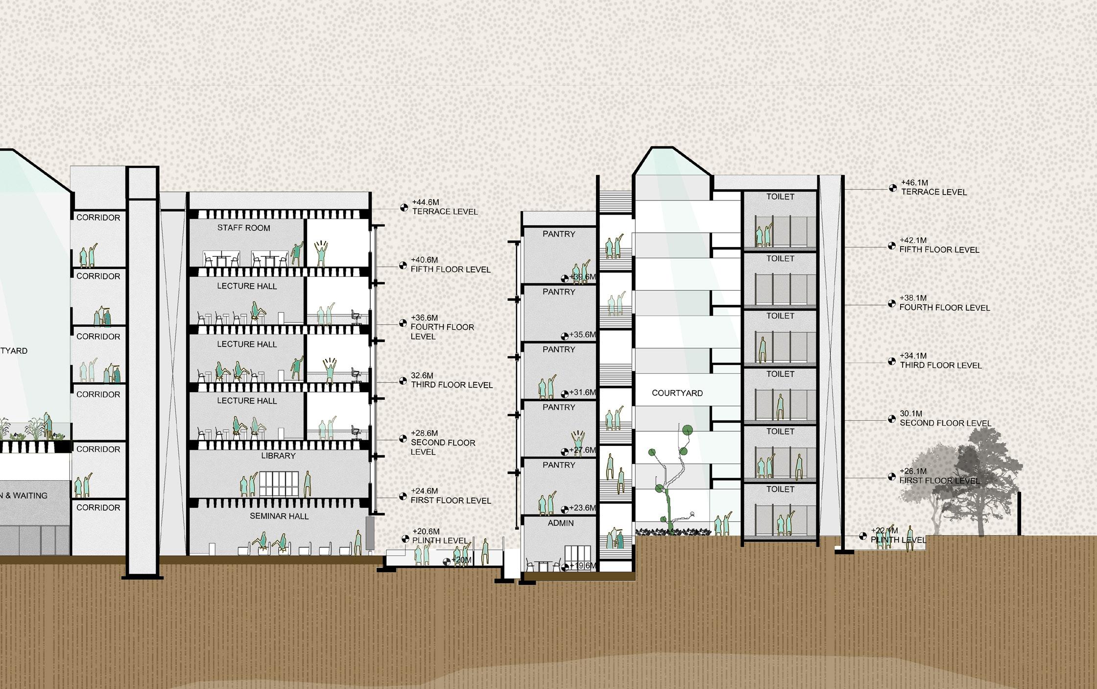 AYURVEDA IS A LIFESTYLE MORE THAN A SCIENCE. The concept comes from the duplication of human and design similarities. The argument that a building also breathes. Dhyana is a center that promotes healing and well being of all of it’s users. With open courtyards and breakout spaces for students to facilities for other users and staff members, Dhyana is a safe and inclusive space for all.