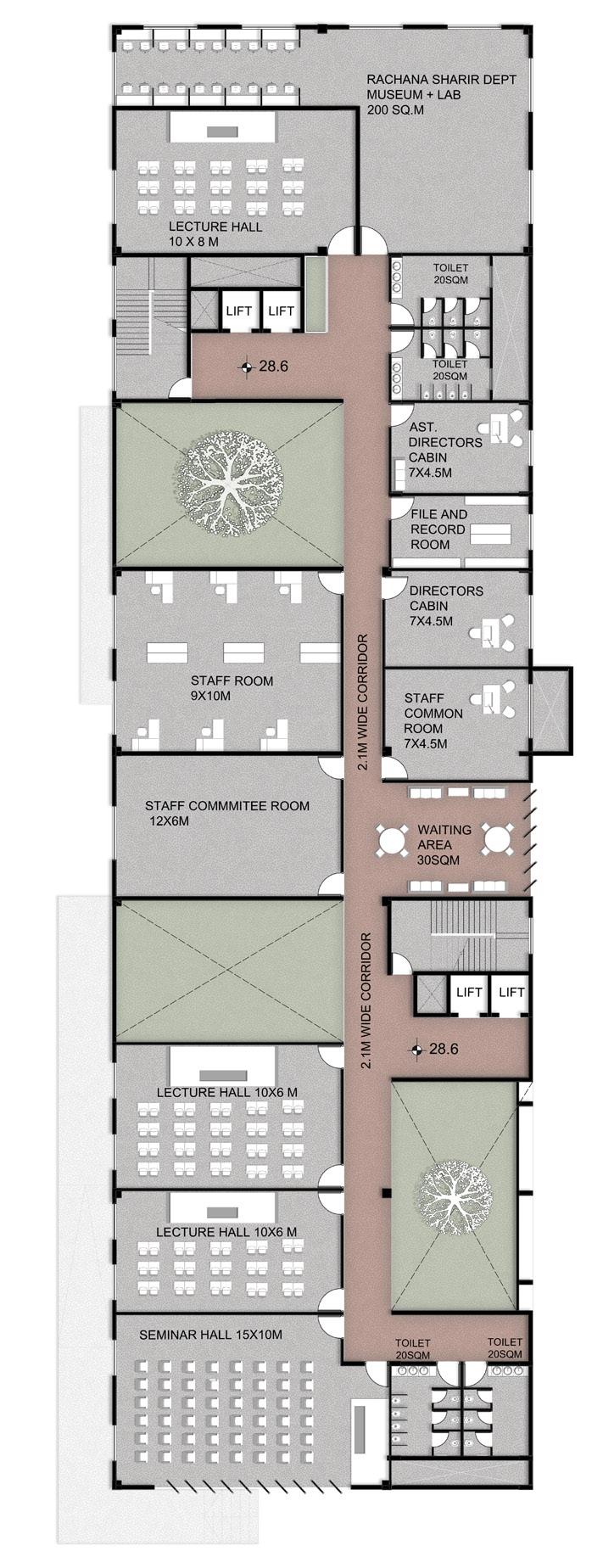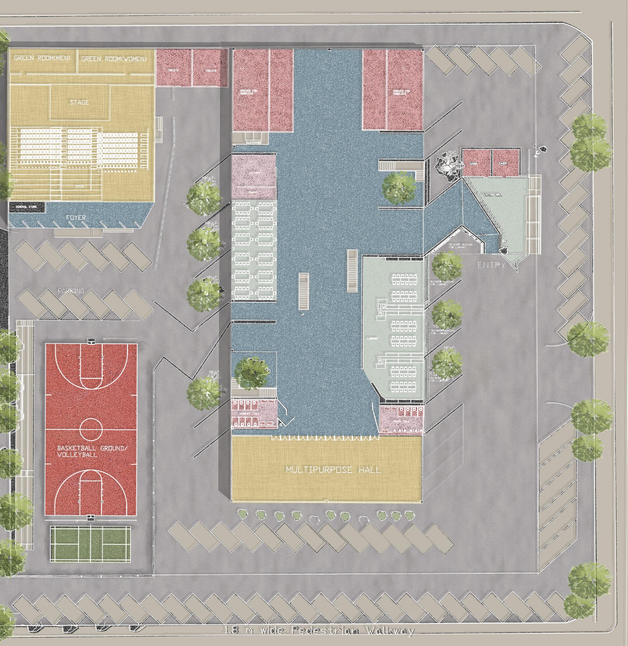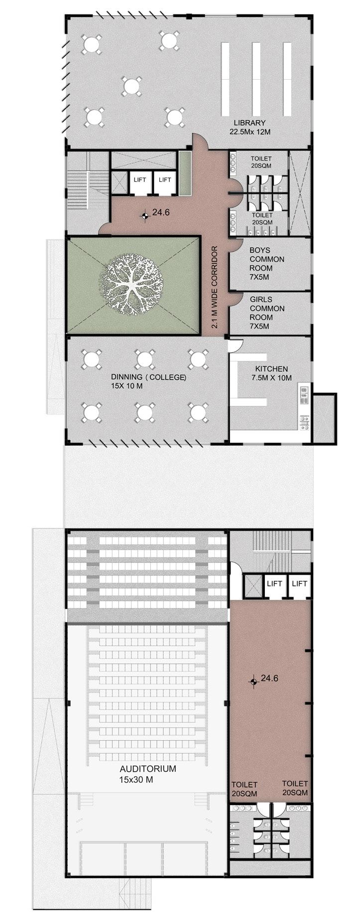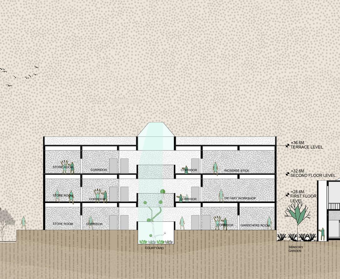AYURVEDA IS A LIFESTYLE MORE THAN A SCIENCE. The concept comes from the duplication of human and design similarities. The argument that a building also breathes. Dhyana is a center that promotes healing and well being of all of it’s users. With open courtyards and breakout spaces for students to facilities for other users and staff members, Dhyana is a safe and inclusive space for all.