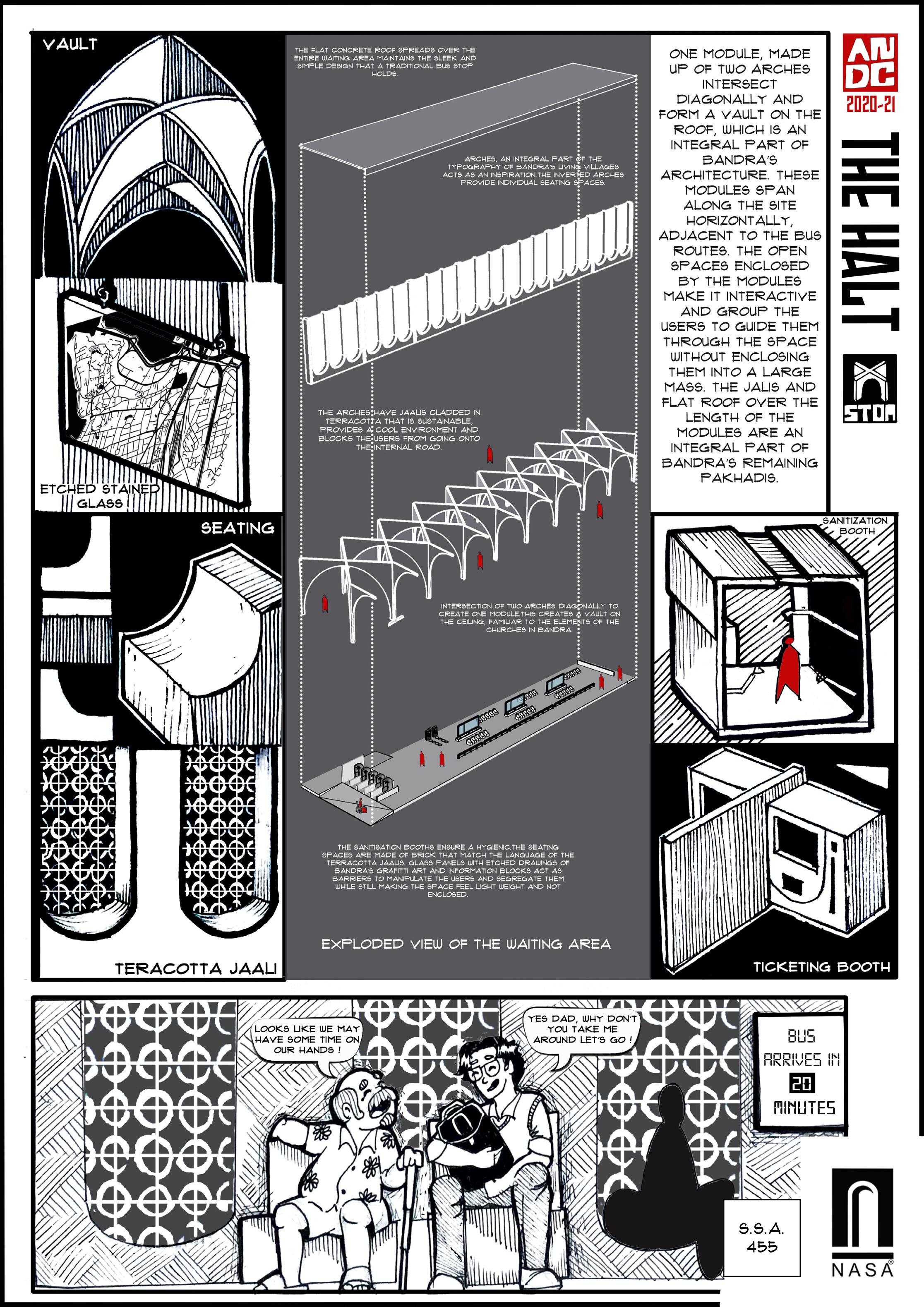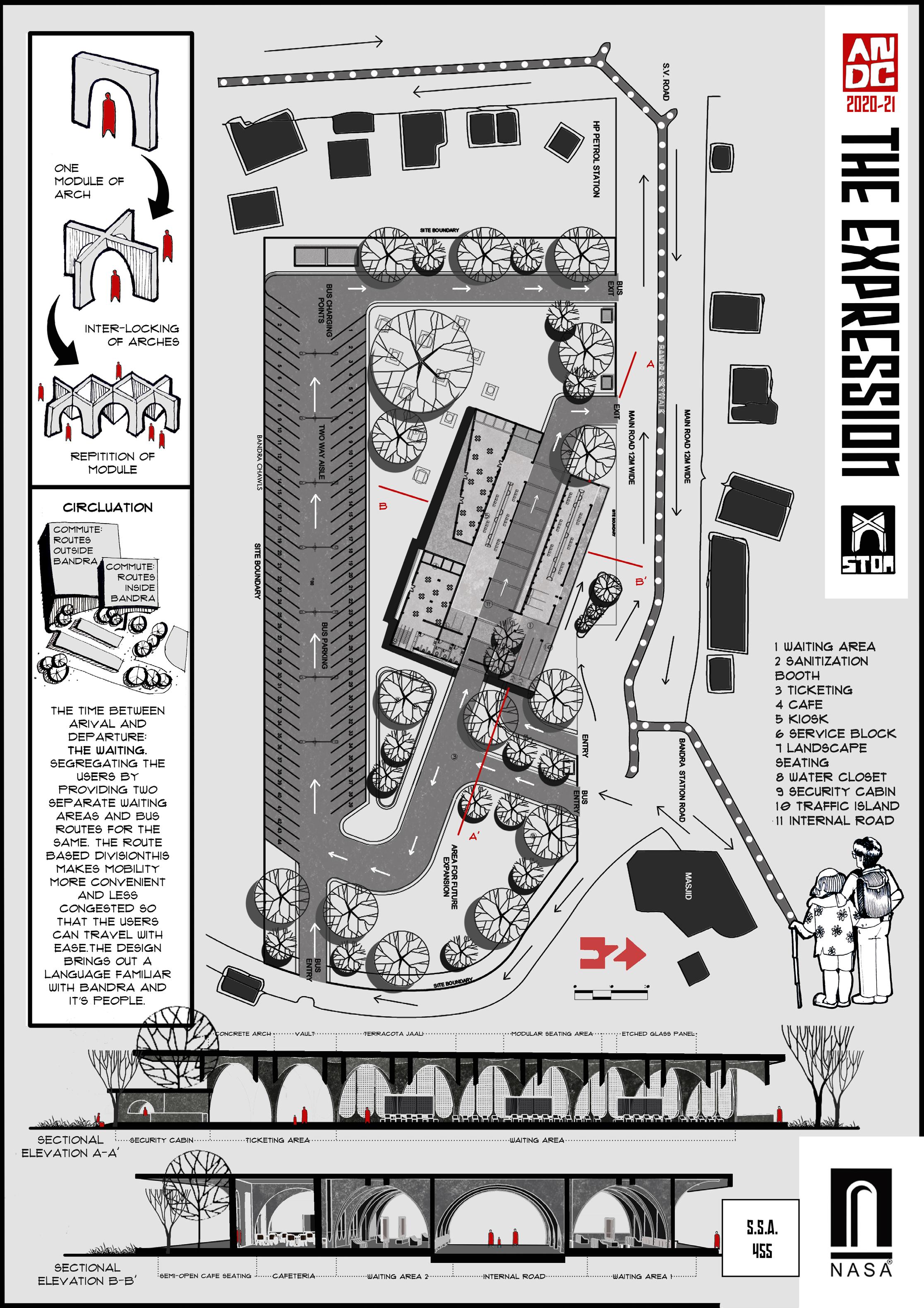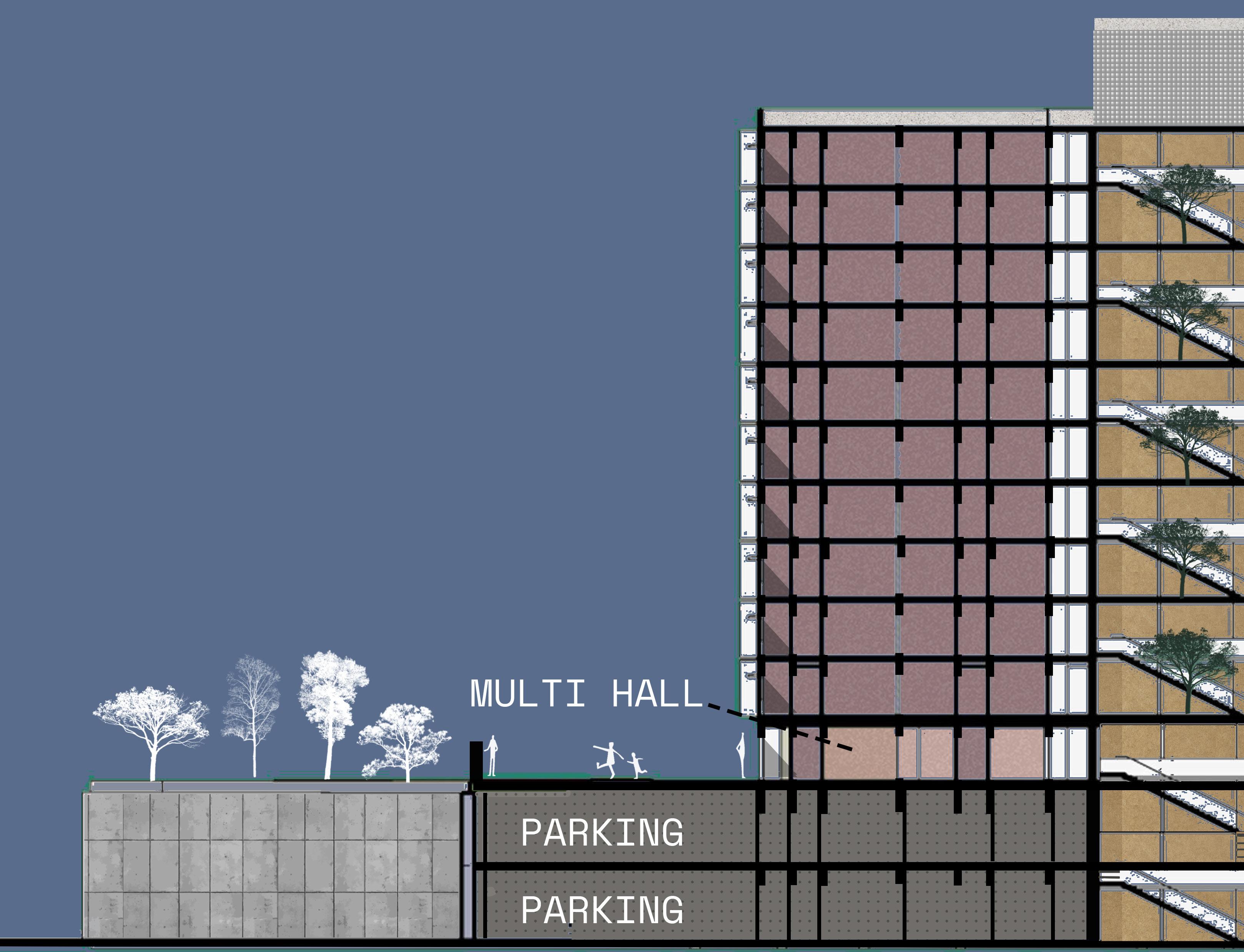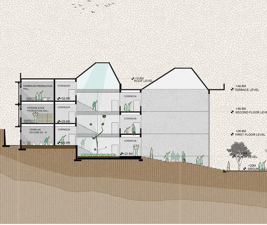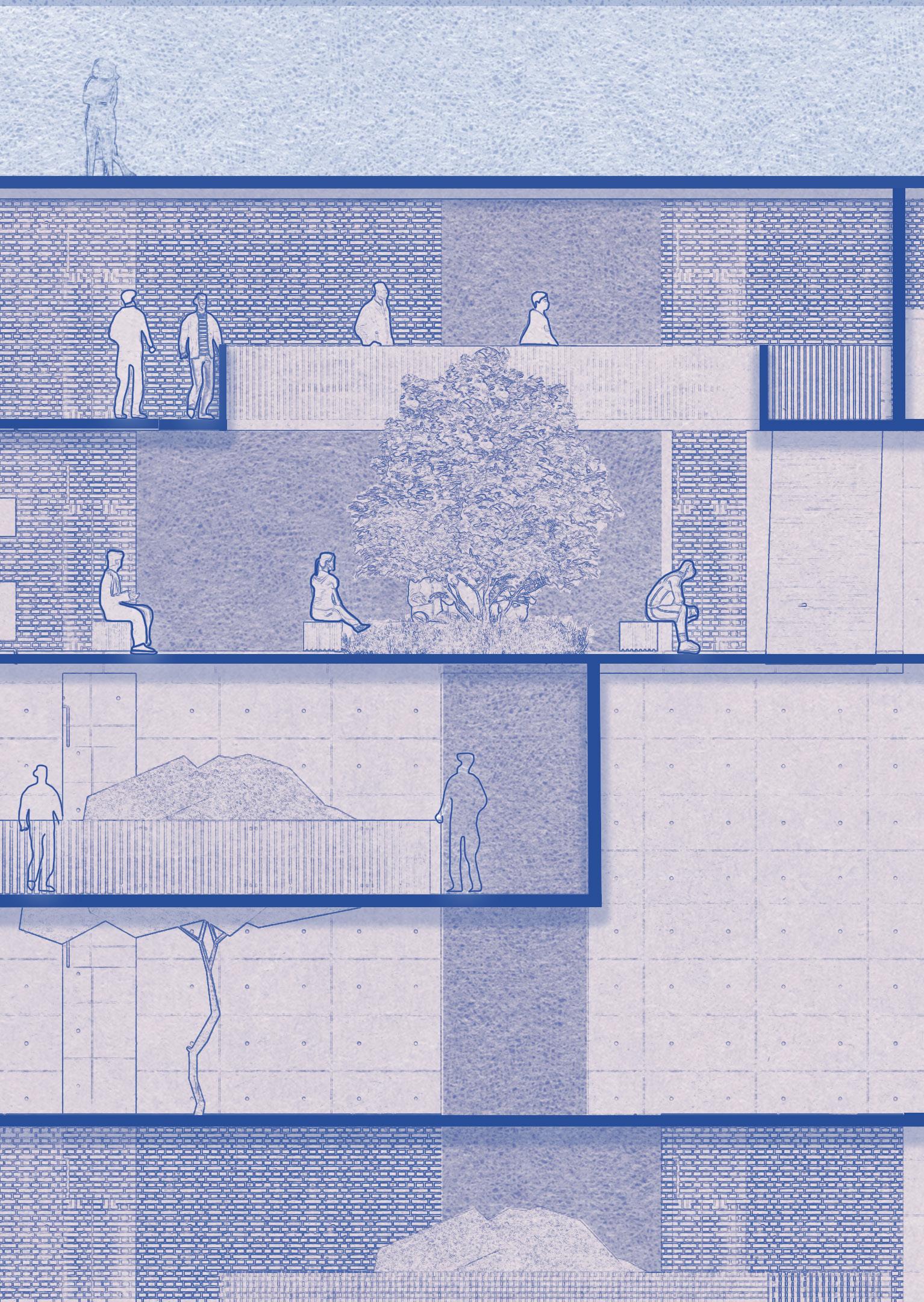 THE POLICE PLAY A VITAL ROLE IN A CITY’S LIFE AND ARE A SYMBOL OF STRENGTH AND PROTECTION. THE DESIGN OF THE LAW ENFORCEMENT CENTER IS IN SUCH A WAY THAT THE FRAMES AT THE ENTRANCE PROTECT THE PEOPLE INSIDE THE CENTER AND ALSO ACTS AS A RESPONSE TO THE CLIMATE OF THE SITE, CREATING FRAMES FOR JALIS WHICH CREATE A COOL MICRO CLMATE INSIDE THE STRUCTURE. THE ENTRANCE HAS STAIRS WHICH BECOMES A SPACE FOR THE PUBLIC,AN ICON TO SIT AND INTERACT INSPIRED BY THE ICONIC LIBRARIES OF MUMBAI.
