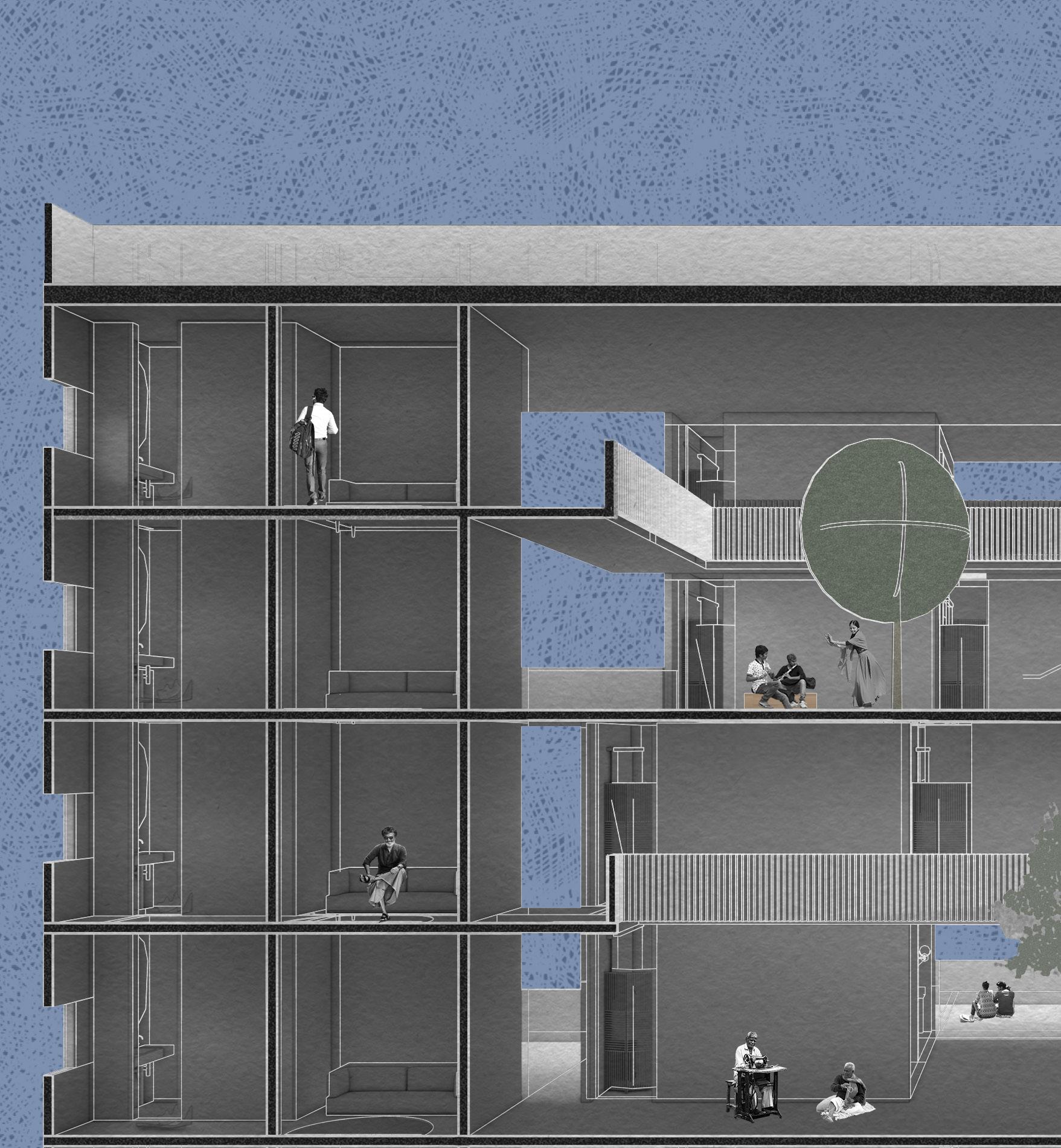 in a time constraint schedule the world needs more of spaces that can be molded and used as per the demand of situation and flexibility of users. the concept of co-living where the spaces can be shared and workspace can be incorporated within must be introduced. the design proposal is inclined towards this idea of co living and create a space that connects the outside world and nature together. the design proposal also encourages professionals of various background helping each other to grow as an individual and a community to achieve social gatherings in society. user groups