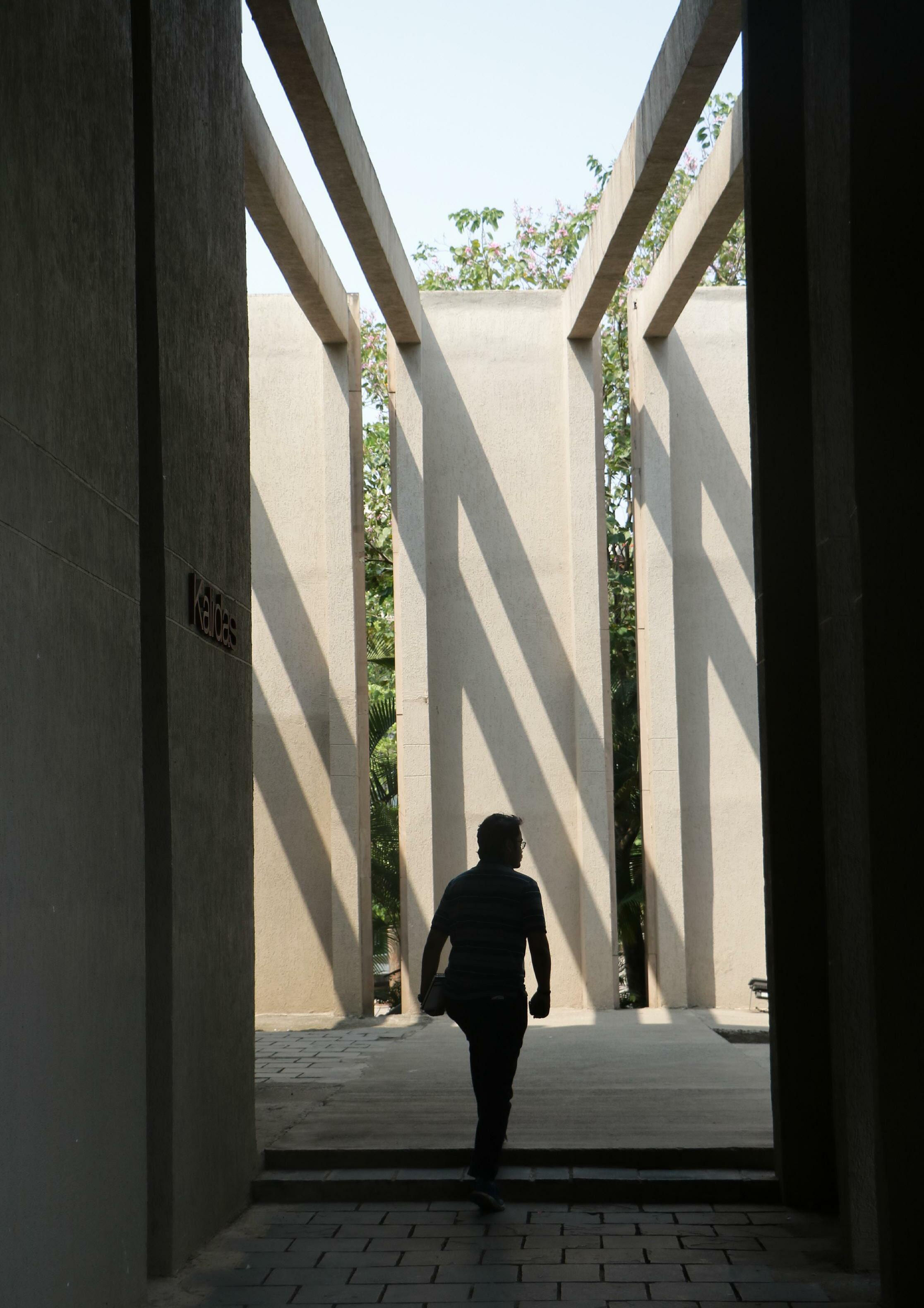 The entire feel is organic with natural light washing the exposed walls and ceilings with a spectacular play of light and shadows. This introduces a merger of the interior and exterior spaces.