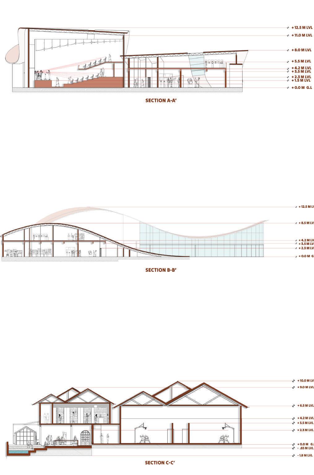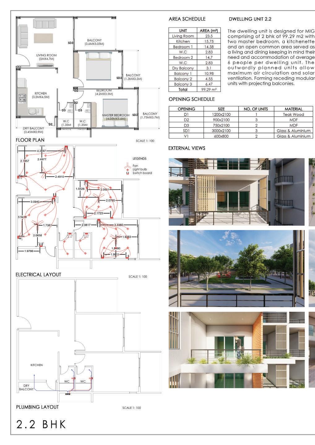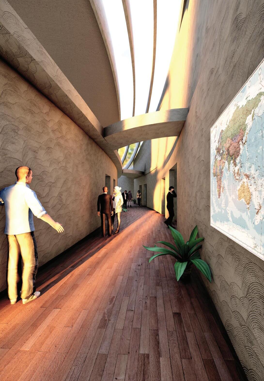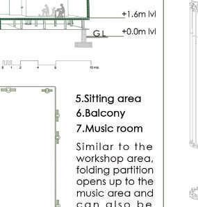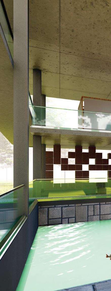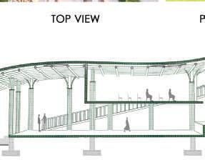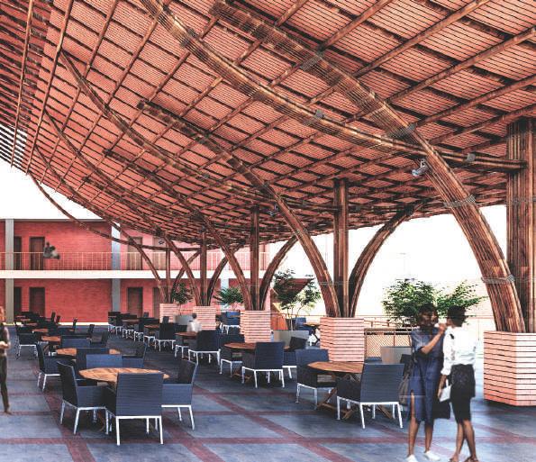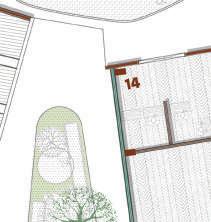 This spine is deliberately designed with various elevational points along its course, offering dynamic visual and physical experiences. These different levels serve as access points, providing a dynamic landscape that can be explored. Additionally, the varying elevations make it accessible to everyone, including individuals with disabilities, thanks to its sloping design that acts as an inclusive ramp. Along this central spine, the design approach involves placing studio apartments on the left side. This placement is deliberate, as it offers a balanced and comfortable living experience for residents.