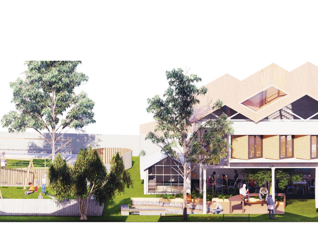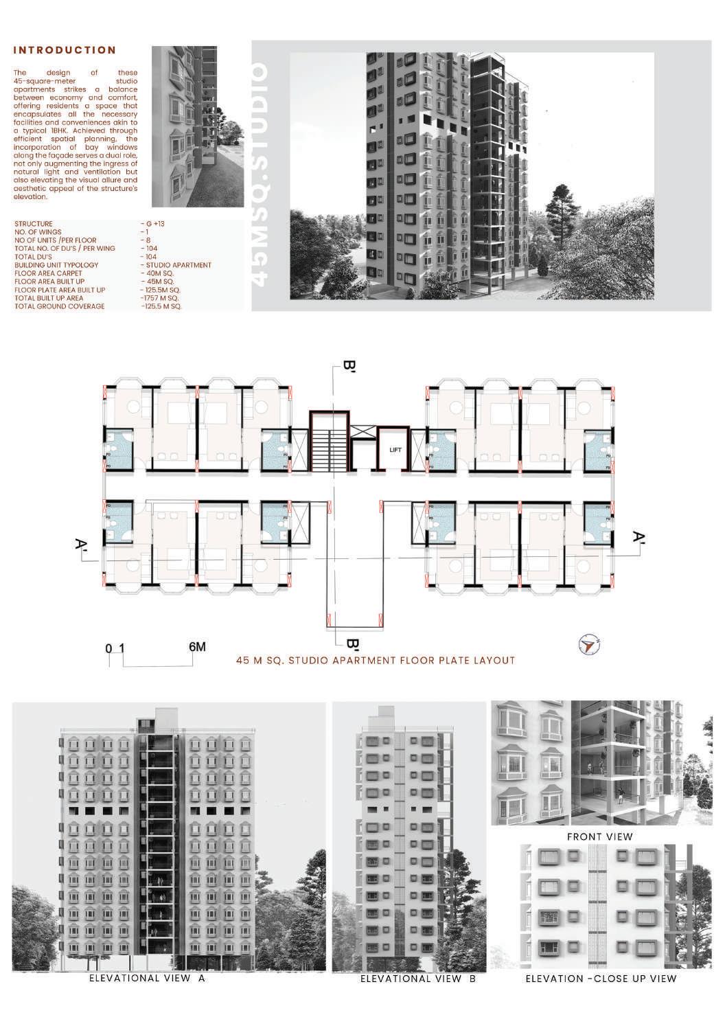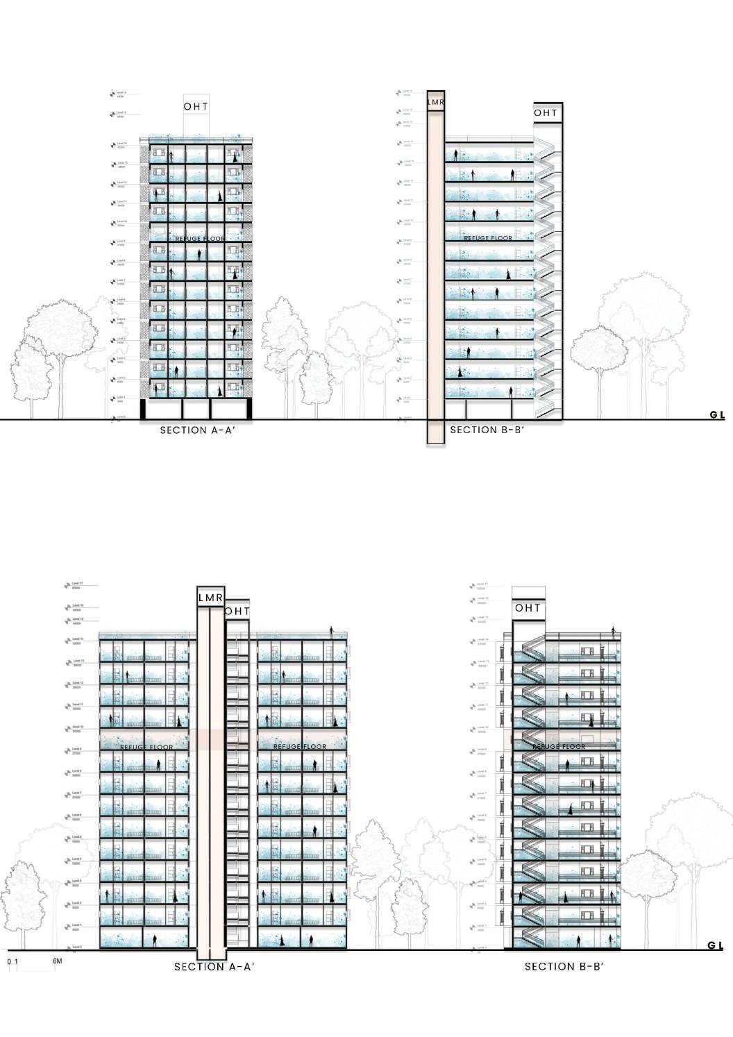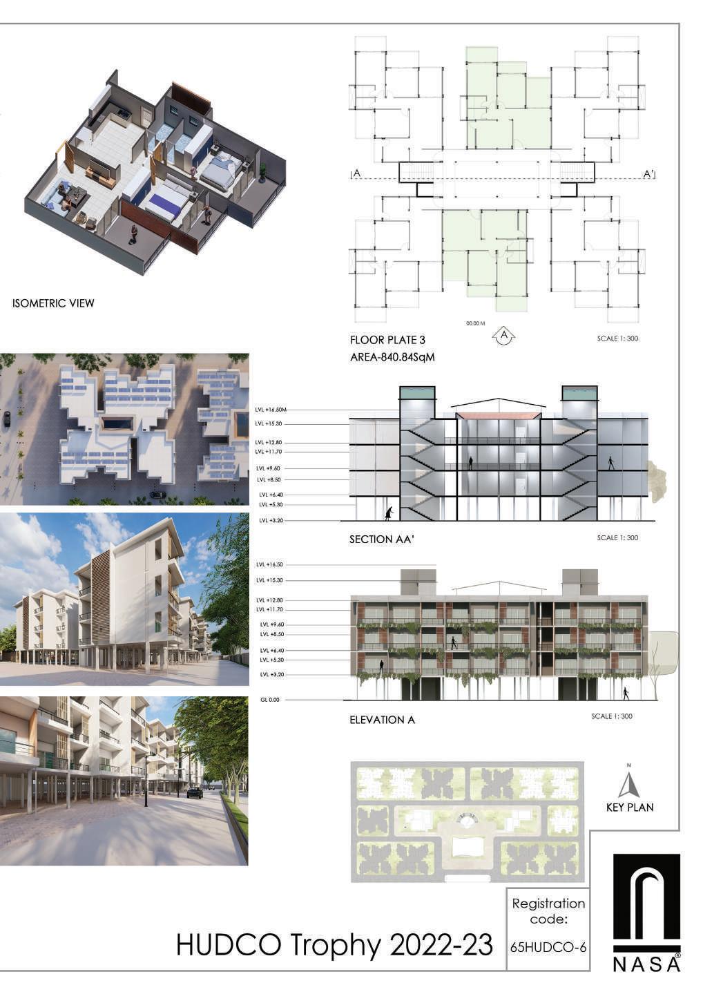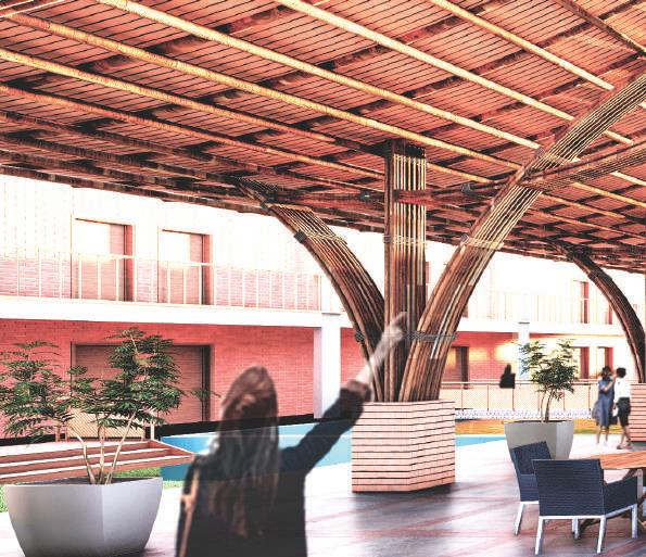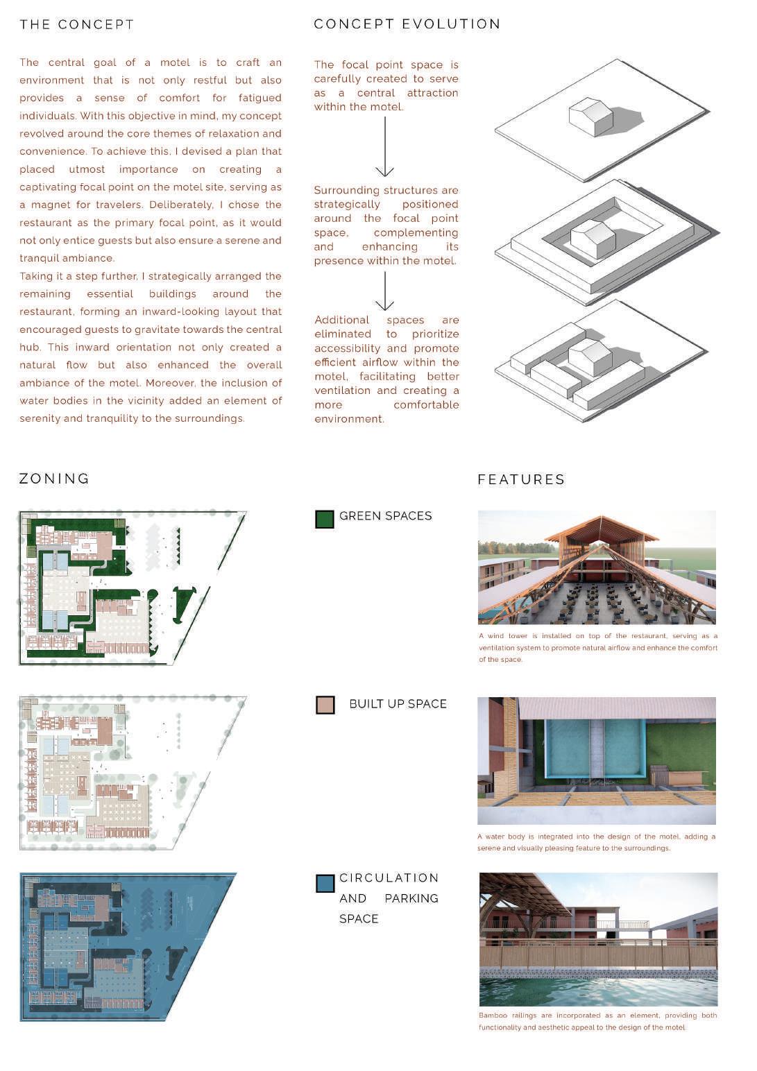 This spine is deliberately designed with various elevational points along its course, offering dynamic visual and physical experiences. These different levels serve as access points, providing a dynamic landscape that can be explored. Additionally, the varying elevations make it accessible to everyone, including individuals with disabilities, thanks to its sloping design that acts as an inclusive ramp. Along this central spine, the design approach involves placing studio apartments on the left side. This placement is deliberate, as it offers a balanced and comfortable living experience for residents.