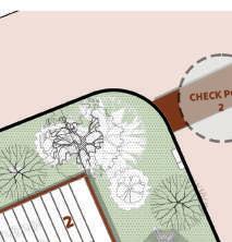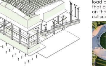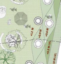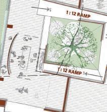 The site is placed such, that it attains the shade of the canopy as well as enjoy the viewpoint present at the highest level of the structure, without causing hinderance to either the view from the street or the structure itself. Height is restricted to 1.5 m above ground in order to avoid blocking the view of gateway from street, which was previously the case with the plaza existing in the garden.