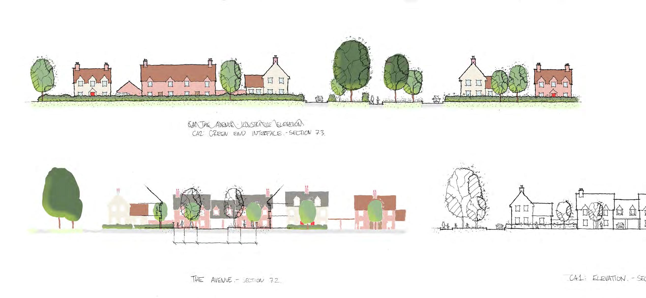 Green End, which includes the Green End Conservation Area, will include lower density homes with a front swathe of open space, including the new community green. The new homes will be a maximum of 2 storeys in height and carefully designed to respect the traditional local vernacular.