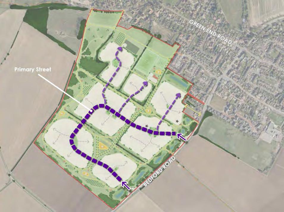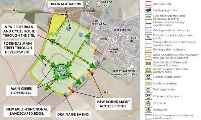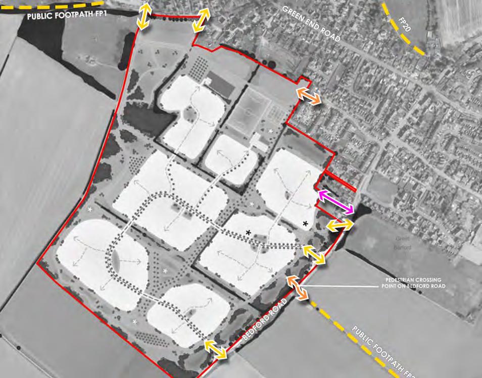 • Pedestrian and cycle access and crossing points from Green End Road and Bedford Road