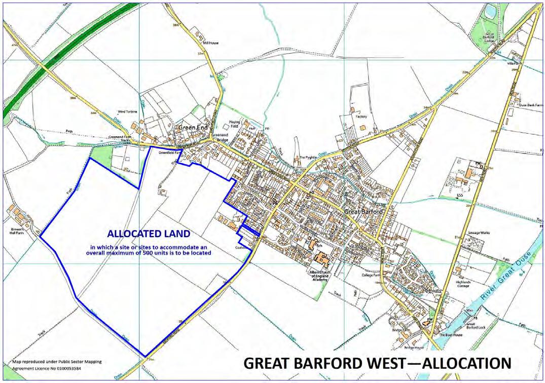 The Great Barford Neighbourhood Plan 20202030 (“the Neighbourhood Plan”) was made on 19th January 2022. Policy H1 (Location for Future New Housing Development) sets out the area of land designated for up to 500 new homes and associated open space. This land is referred to as Land at Great Barford West (“the allocated site”) in the Neighbourhood Plan. The policy requires a Development Brief and Design Code be prepared for the Site, which encompasses the requirements of Policies in the Neighbourhood Plan and the key principles for development at Great Barford West (to be developed as Millfield End) as set out by Policy H1.