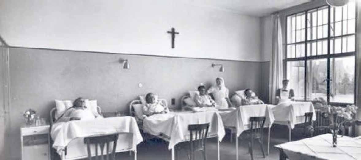 weliswaar breder dan een gemid deld trottoir, maar al stoeiend zijn er regelmatig kinderen rakelings langs een passerende Solex of Daffodil gerend. De oudere kinderen hadden hun speelkwartier op het voorplein van gevangenis De Blokhuispoort. Gelukkig speelde ik daar eerst nog niet, want het was ook de ingang van het Stadsziekenhuis. Je kon het zien als er linksboven achter het grote raam geopereerd werd. Het bracht bij mij vage beelden naar boven van het ongeluk van mijn moeder. Eén leer ling moet wel blij geweest zijn dat het ziekenhuis zo dichtbij was. Hij was tegenover onze school met zijn been in een spijl van een ijzeren hek terechtgekomen. Ik zag de punt er bij zijn dijbeen weer uit komen. Het driehoekige stukje ijzer is door een werkman afgezaagd. De ongeluk kige jongen werd voorzichtig van de omheining gehaald en in gezwinde draf naar het ziekenhuis gedragen. Een maand later zag ik hem weer vrolijk huppelend naar school gaan. Ik kwam hem later nog vaak in Leeuwarden tegen. Het eerste waar ik dan naar keek was zijn linker bovenbeen.