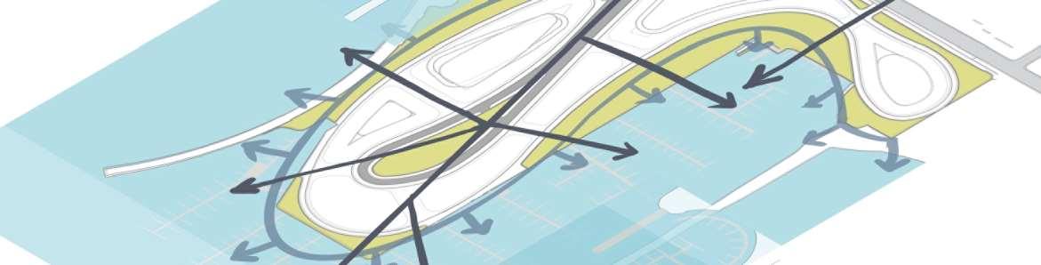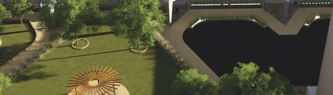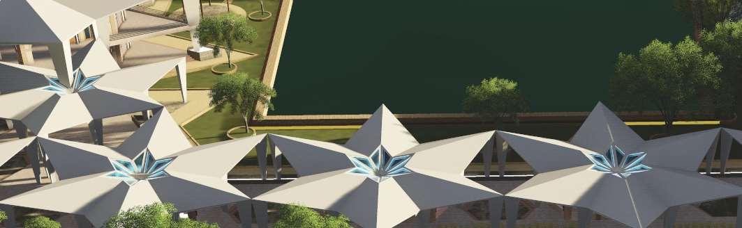 that connects the constructed and unbuilt places in a harmonious way. The parametric design meets the functional heritage; so, the goal was to construct a development that encourages people to participate in both social and economic edge to provide maximum view of the natural environment and let the wave of refreshing surroundings ßow in .In materials .The Canopy above will add a modern element that envelops the entire area following a wave pattern. Thus, both the aspects of design.