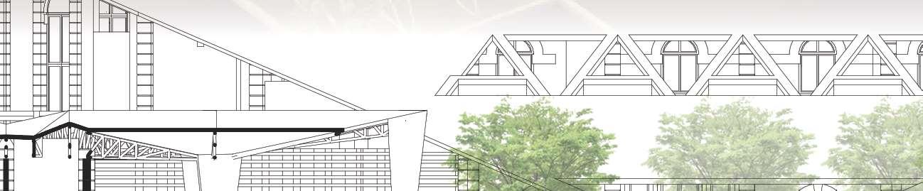 The design of the Fabric Pavilion embraces the natural vegetation of the site, integrating existing well-grown trees and heritage structures into the layout. By preserving the lush greenery, the pavilion creates a serene environment that contrasts with the urban hustle of Mumbai. The use of triangles in the architectural design symbolizes the intricate patterns of Indian textiles, achieving a perfect balance between form and function. The external modern form of the pavilion seamlessly transitions to internal spaces that reßect Mumbai’s architectural charm.