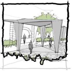 The Fabric Pavilion is designed with a keen focus on environmental sustainability and cultural preservation. By retaining the existing vegetation, the pavilion minimizes its ecological footprint while enhancing the aesthetic appeal of the space. The integration of heritage structures ensures that the historical essence of the site is preserved, offering visitors a journey through time