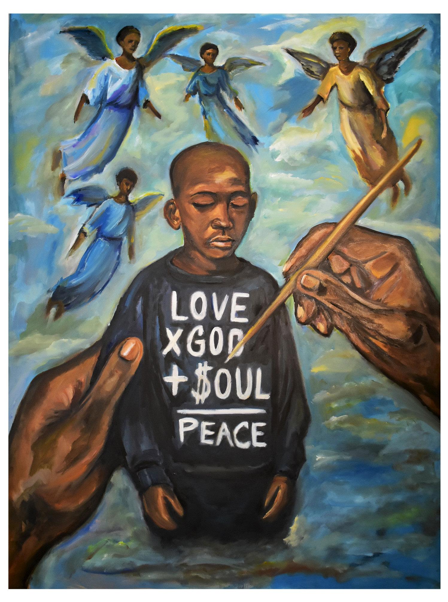Sloan’s study of Eastern art and African civilization has profoundly influenced the approach to identity and self-expression. “We, as a people, are the emblems of art, science, and intelligence,” Sloan states passionately. By amplifying narratives that extend beyond the history of slavery, Sloan’s work highlights the African origins of civilization itself. “God’s greatest creation is us, and the more I evoke this higher consciousness through images and symbols, the closer I come to reflecting God’s image in this process of life.”