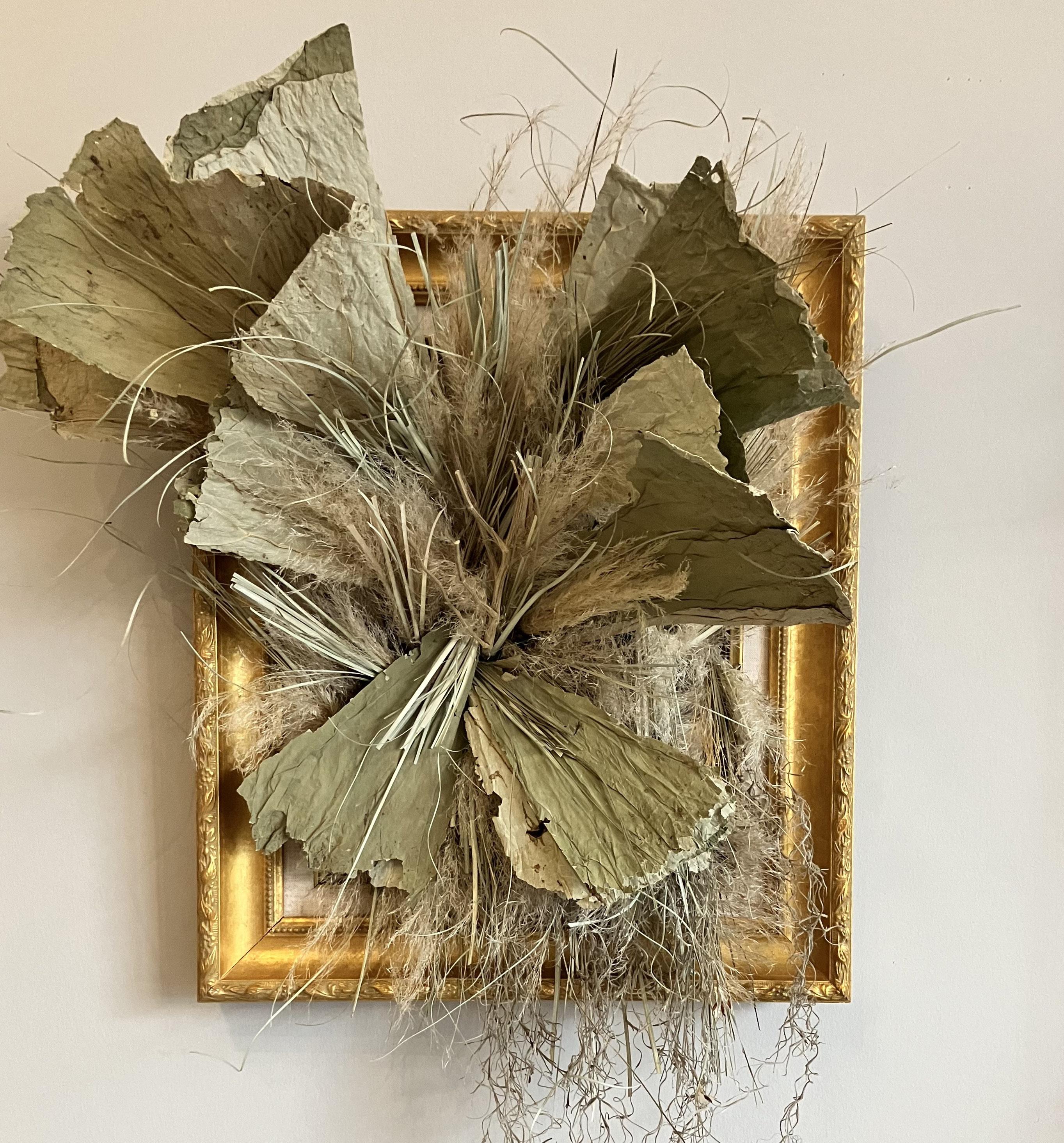 “Using discarded plant matter and upcycled materials is both an ethical choice and a creative challenge,” she notes. “I see value in what others might discard. Every component I use is chosen with intention, from dried stems to vintage frames. By reimagining what already exists, I can honor the natural world rather than take more from it.”