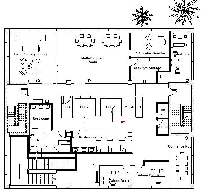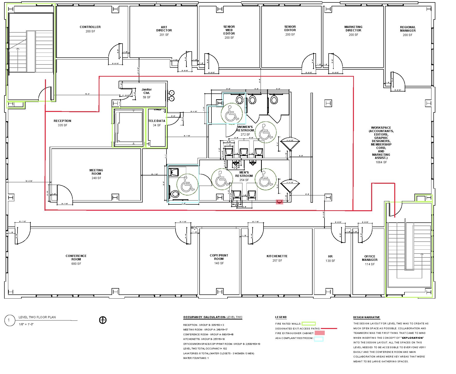 On the first and second levels, saftey , funtionality, accesibility, and adaptability are all achived by cultural elements, and building systems and materials. Sucessful circultion is achived by designing individual units, pathways,adjacencies, and corridors that support the occupants needs and wellness.