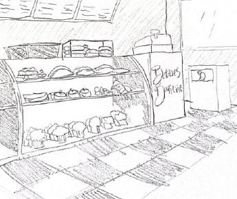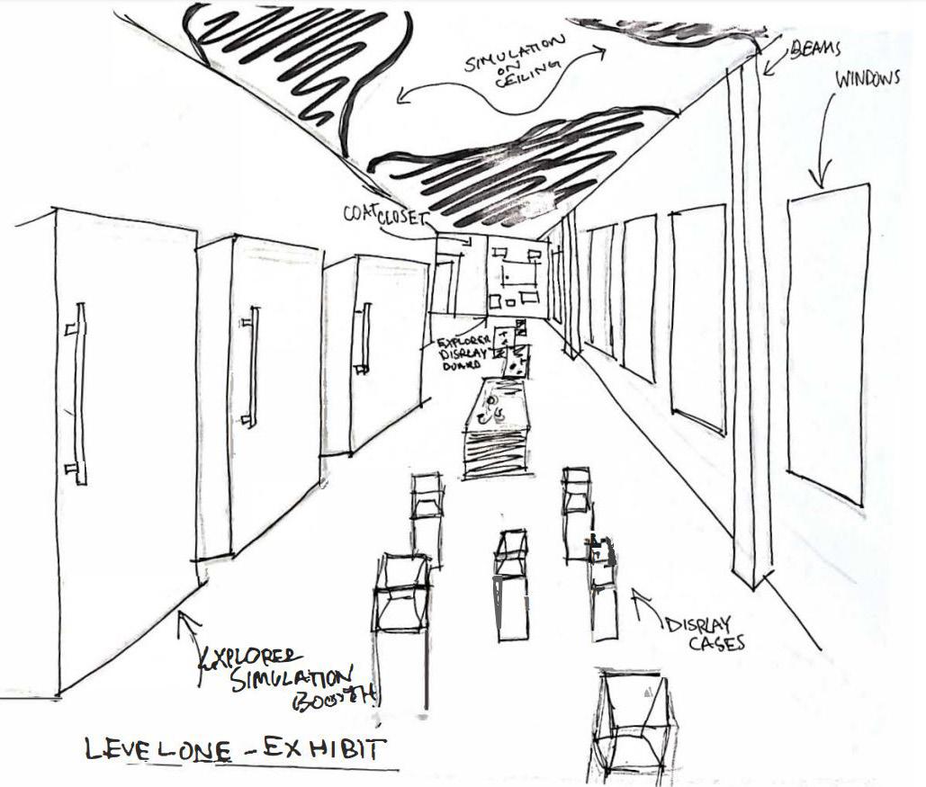 Bottom-Left to Right: Level One Exhibition Sketch and Perspective.