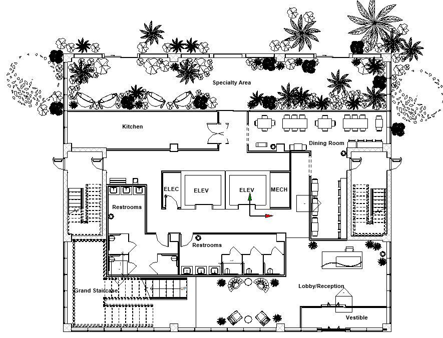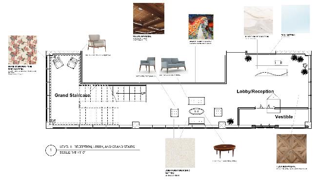 Right Top: Reception,Lobby, and Grand Stairs furniture plan.