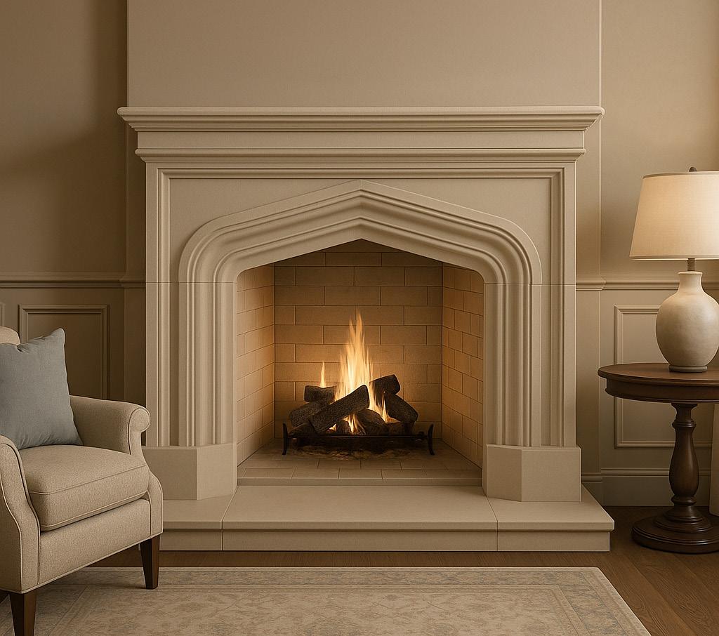 Inspired by the classic “Lancet” arch, this mantel brings a touch of Gothic elegance to any space. Its graceful, pointed arch creates a striking focal point, blending historical architectural influence with timeless design. The Lancet’s refined details and stately presence make it a sophisticated addition to both traditional and transitional interiors, offering an elegant centerpiece for any room.