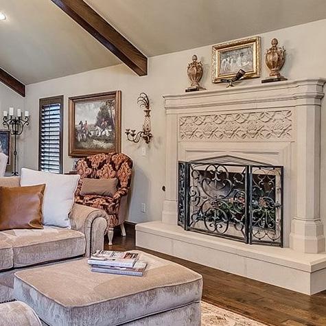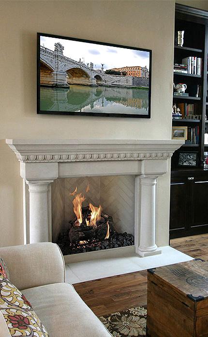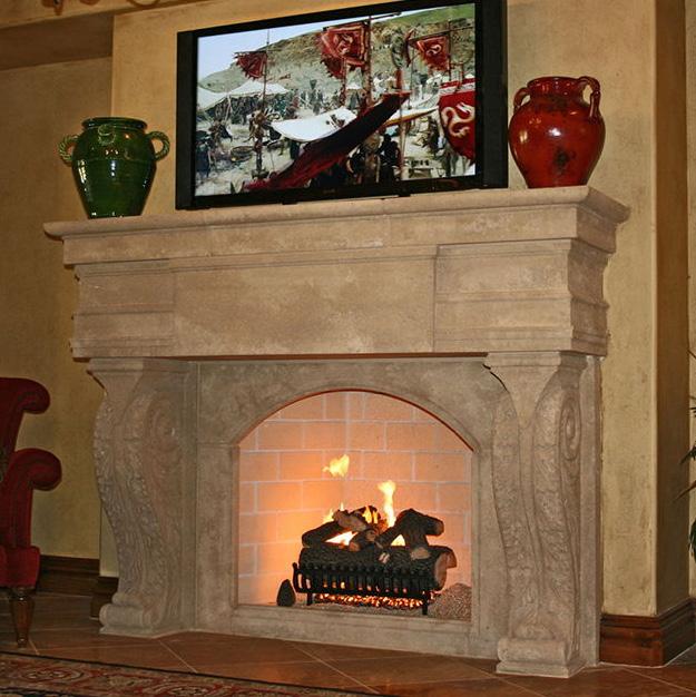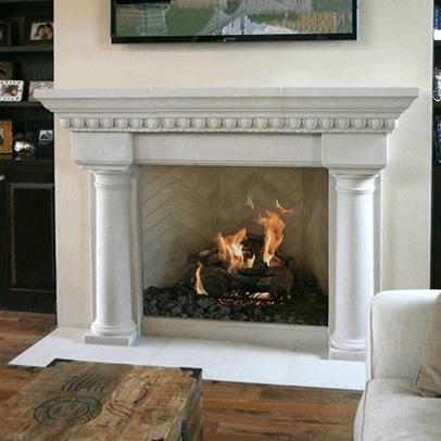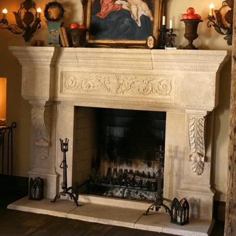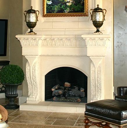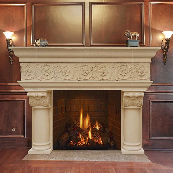 The ornate, bold look of the Renaissance is a hallmark of our Italian styled cast stone fireplace mantels. Several elements of our designs such as scrolls, columns, egg & dart borders, and acanthus leaves have their roots in Ancient Greek and Roman architecture.