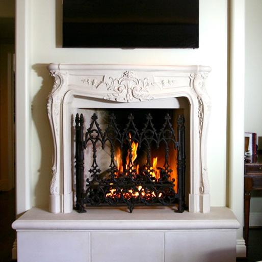 The English Tudor style of architecture is evident in our Gothic themed fireplace mantels. The detailed traceries in the headers are hand carved by our artisans.