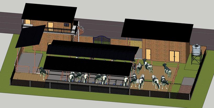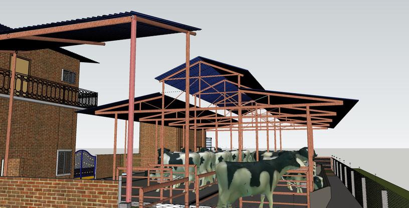 THE IDEA WAS TO DESIGN A COW SHED IN MINIMUM LAND AND WITH IN MINIMUM CONSTRUCTION COST THE COW SHED SHOULD ALL THE FACILITIES WITH IN MINIMUM LAND