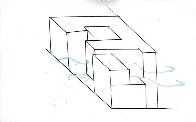 CREATING CENTRAL COURTYARD,WHICH ACTS AS AIR TUNNEL IN THE HOUSE